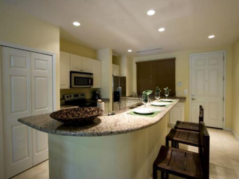 The condo is next to the lap pool on the first floor. It has a spacious kitchen with all the appliances including dish washer. There is a guest bedroom at the front of the condo with 2 twin size beds. Next to it is a full bathroom.