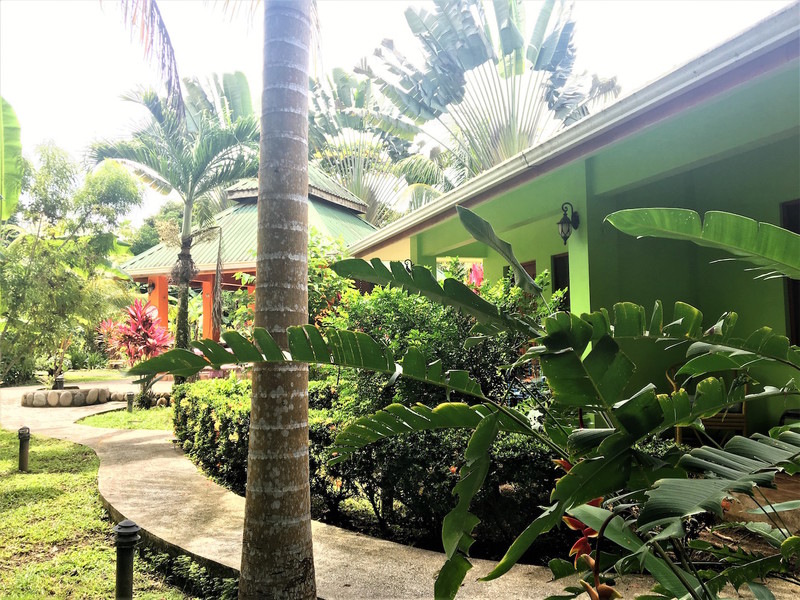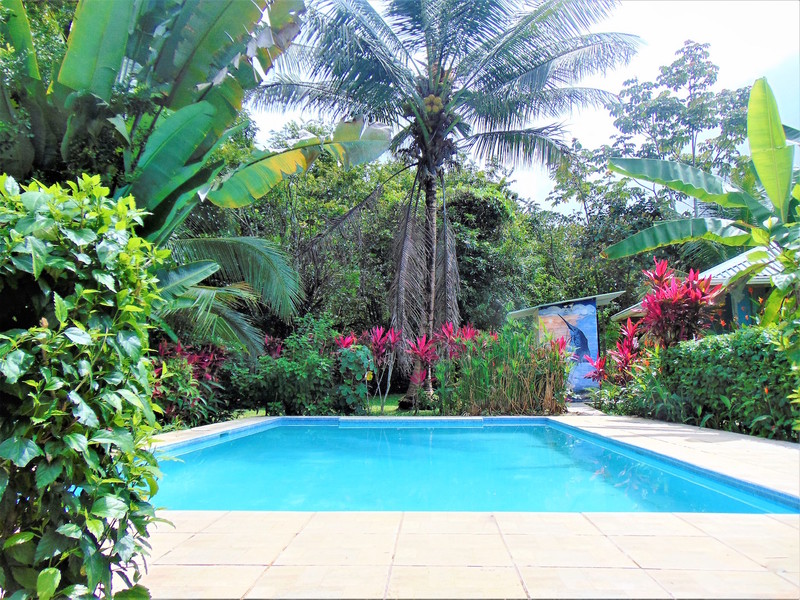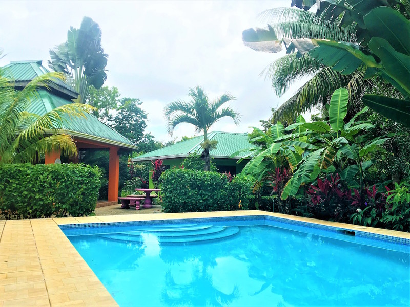 This beautiful 2 bedroom, 2 bathroom home with 2 rental cabinas sits in the heart of Ojochal. Located only 5 minutes from the beach and main highway and within walking distance to grocery stores and many wonderful restaurants. You will love unwinding or entertaining at the outdoor cabana which has a full kitchen, enjoy the beautiful gardens or relax by the pool! This property has great potential for making additional income while living on the property.