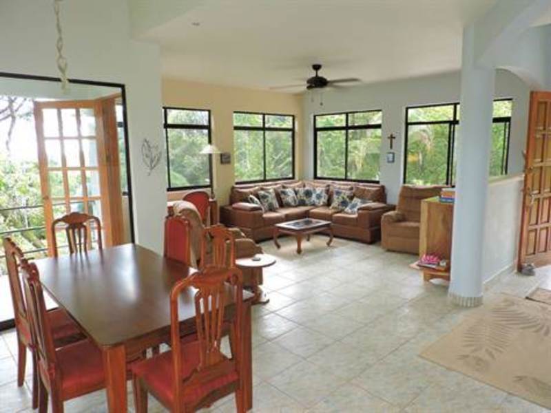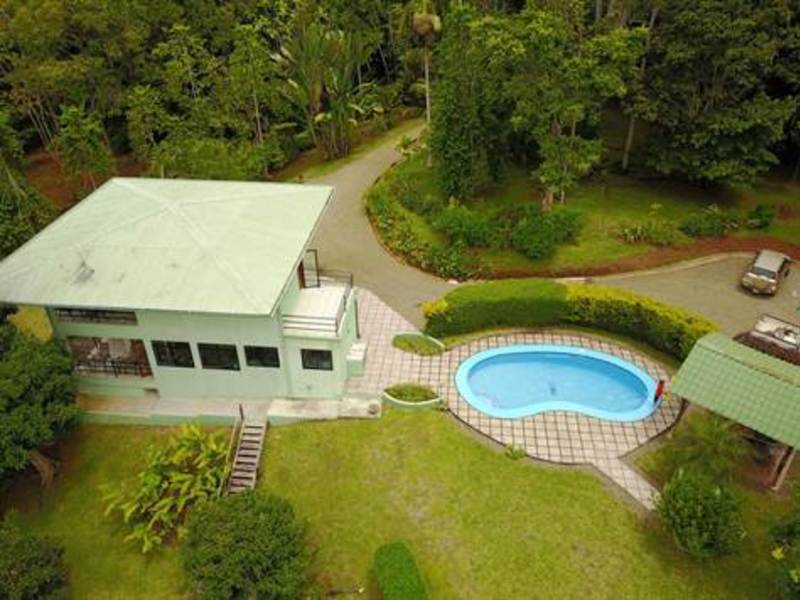 The large custom swimming pool has a covered rancho with gas BBQ and ceramic tile deck for lounging in the sun. The manicured grounds are the highlight of the property with over 50 mature fruit trees, tropical flowers, and native trees with walking trails meandering much of the property. The beautiful oasis is surrounded by wild rain forest with a profuse amount of wild life including White-Face Monkeys, Deer, Pazotes, Wild Pigs, Toucans, Parrots, Ant Eaters, Kinkacheuws, Sloths and all Costa Rica is famous for.