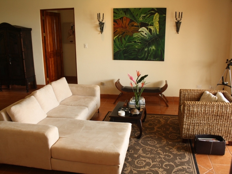 As soon as you arrive you are drawn to the incredible ocean view. The 1,600 square foot home and outdoor areas are perfectly designed to take advantage of the views; and is the perfect place to relax, play and entertain. The open living room and well equipped kitchen are oriented towards the ocean and beckons you to the covered patio, pool and views. You’ll enjoy sitting in the pool with your tropical drink in hand while watching the sun descend into the ocean and observe the toucans in the trees above. After a fun day at the beach you can wash off the sand in the outdoor shower. The two en suite bedrooms are on opposite sides of the living area and also open up to the patio and pool area; providing you and your quests with privacy.