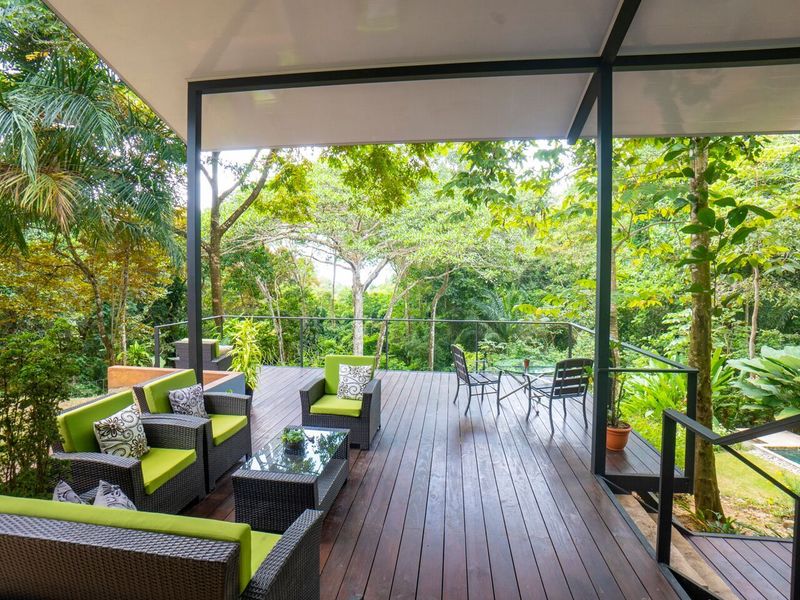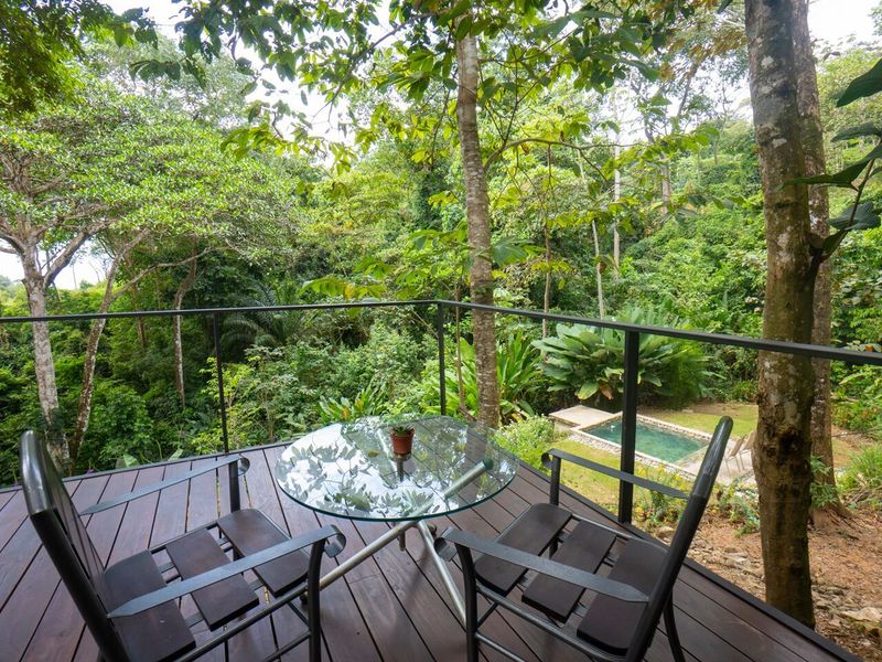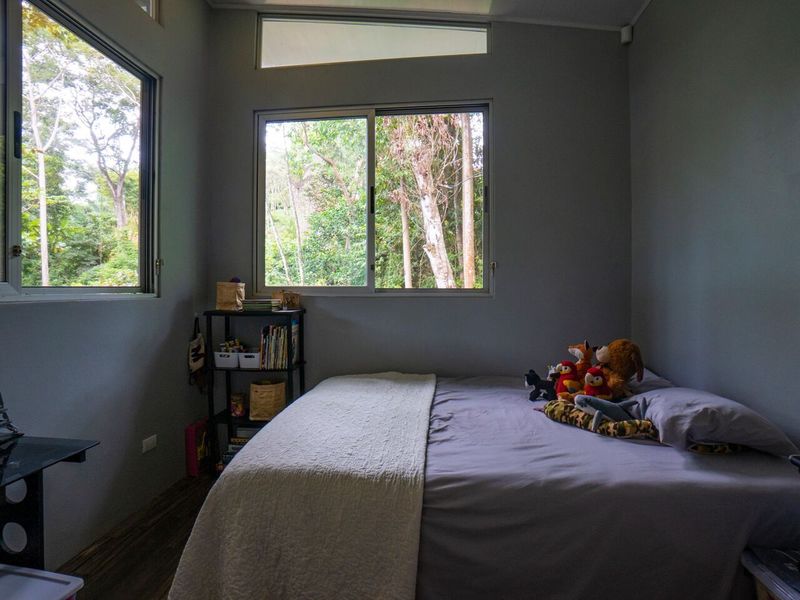 Just 10 min from the Bohemian Village of Dominical and 20 min from Manuel Antonio is this newly built modern home. Situated on 5 acres the property offers an abundance of possibilities. Built in 2013 and freshly remolded in 2016. There are 2 bedrooms one and a half baths and 700 square feet of covered outdoor living space. Tucked into the adjacent jungle setting, your private pool awaits.