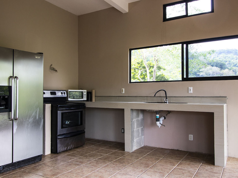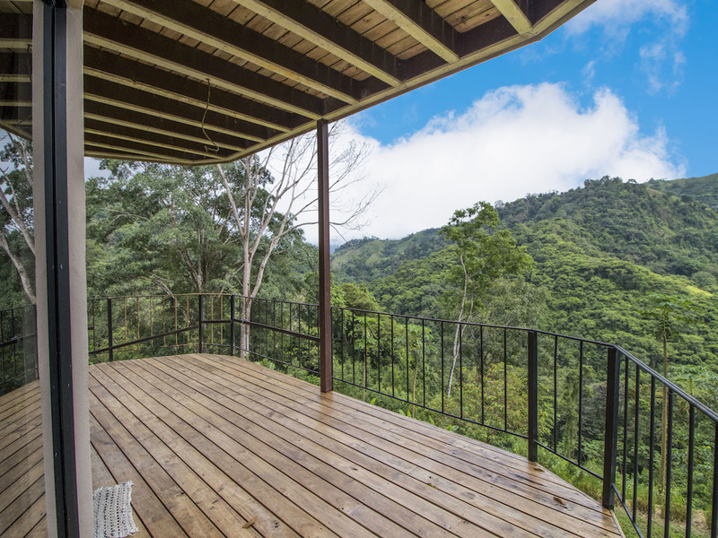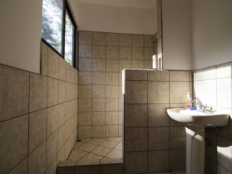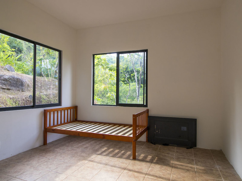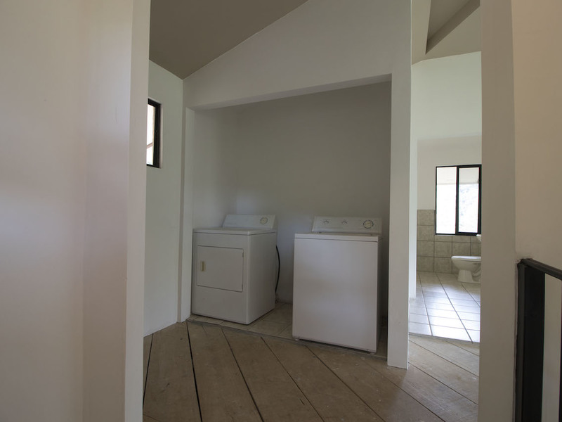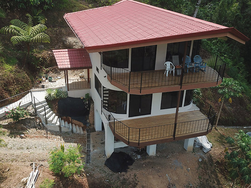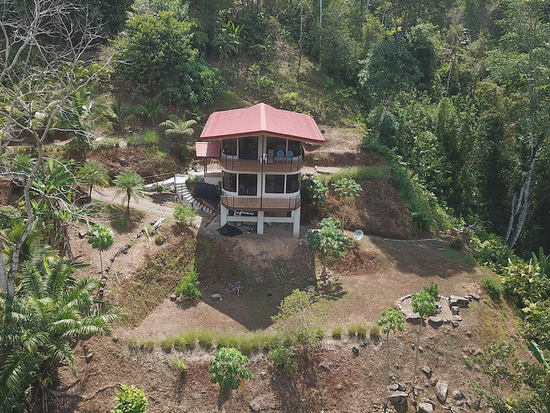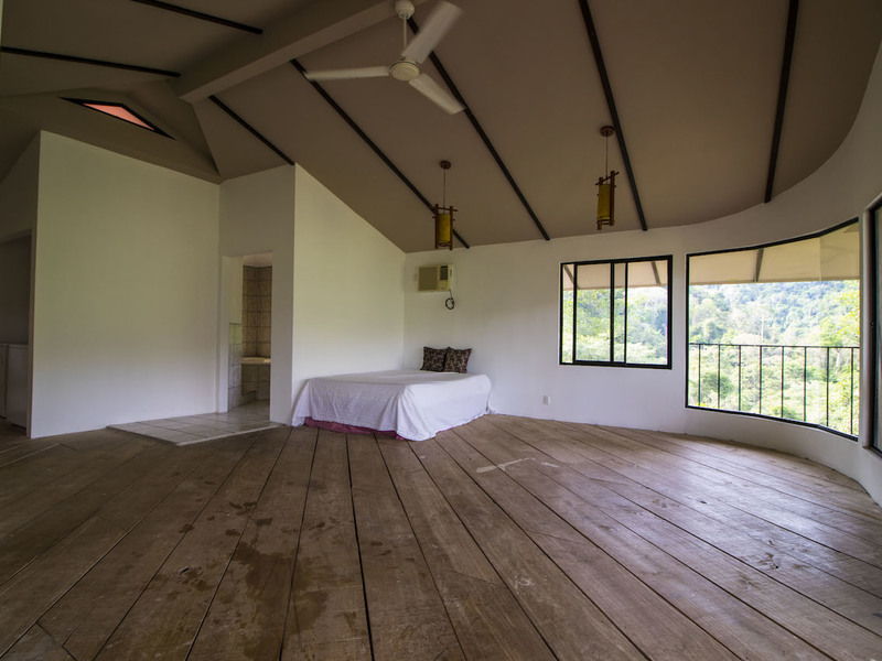 This simple home has spectacular mountain views, a private road to the Rio Guabo, abundant wildlife, and is located in Lagunas (upscale neighborhood near Dominical). It is a very private residence and yet is only 15 minutes from the beach. The house is just above the Rio Guabo with a private access road and a five minute walk to pools, waterfalls, and almost always spectacular wildlife sightings. The home has two large (300 sq ft) porches, one off the great room downstairs and one off the huge master bedroom upstairs. These porches are the real living space for the house! The yard is loaded with fruit trees and the garden is full of flowering plants.