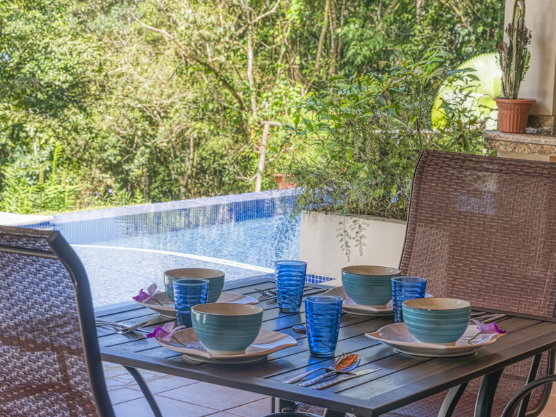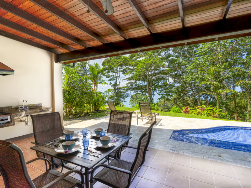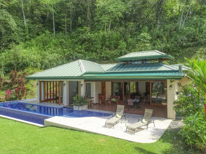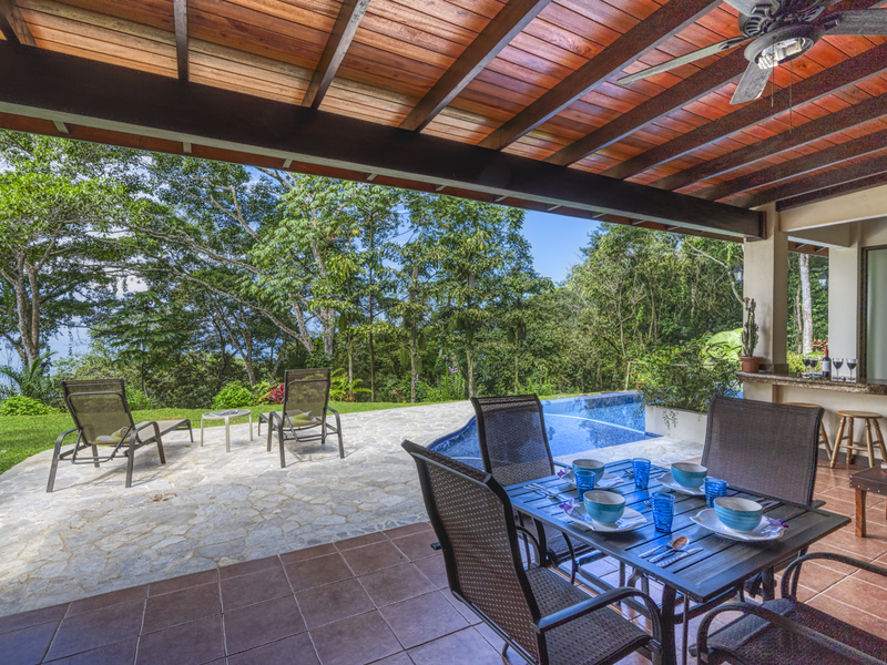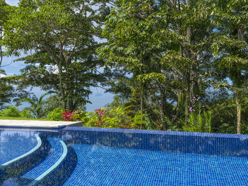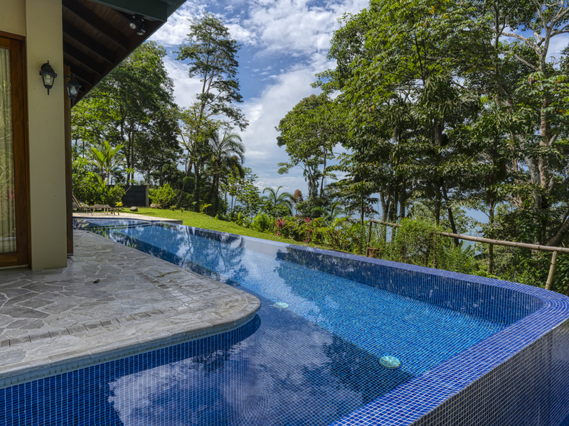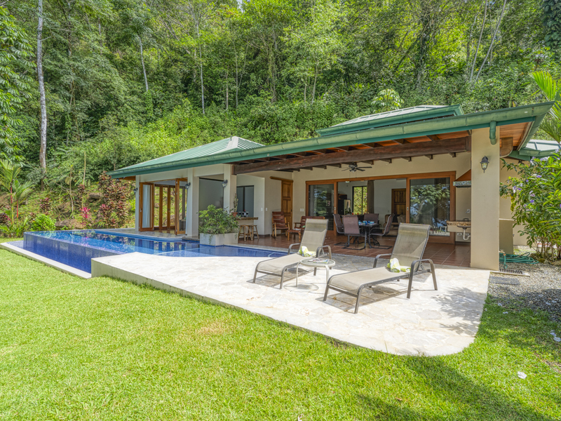 Are you looking for a vacation house in Southern Costa Rica? This 1754-square foot luxury villa is located in the upscale neighborhood of Escalares, where homes are nestled among jungle-laden mountains. Escaleras means “staircase” and these houses are elevated around 400 feet above sea level. With the jungle tree canopies, whitewater views, and cool ocean breezes, this luxury villa would be ideal as a vacation home or a rental property.