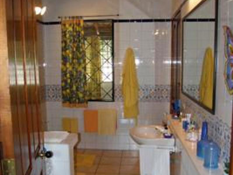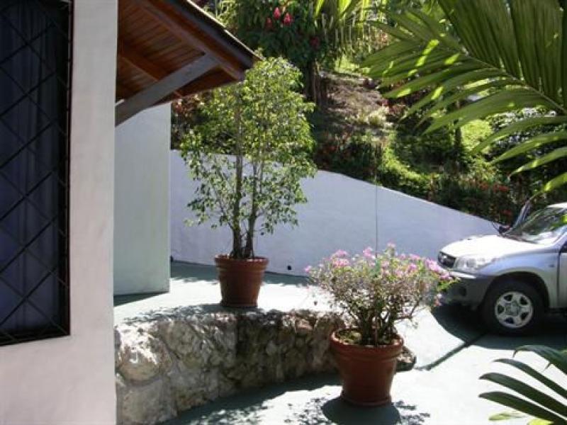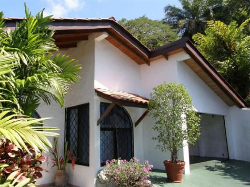 This charming Mediterranean style villa sits on a breezy hillside and over looks the Pacific Ocean and verdant mountains. Just 5 minutes to Quepos and 10 minutes to the beach, it is located in a very well established residential neighborhood with other well valued homes. The property occupies a large lot for the area and has very easy access and a private, gated entrance. Also, there is a proper garage which is connected to the house. The house offers two separate structures: 1. the main house with kitchen, living, dining, master bedroom, walk in closet and full bath & 2 the guest suite with a large bedroom and en suite bathroom. There are very large terraces with great outdoor living and dining with a tropical garden in the front and a small herb and veggie garden in the back. The property has been maintained impeccably and has never before been on the market (original owners of 14 years). The offering represents a great buyer's market value and is being sold turn key.