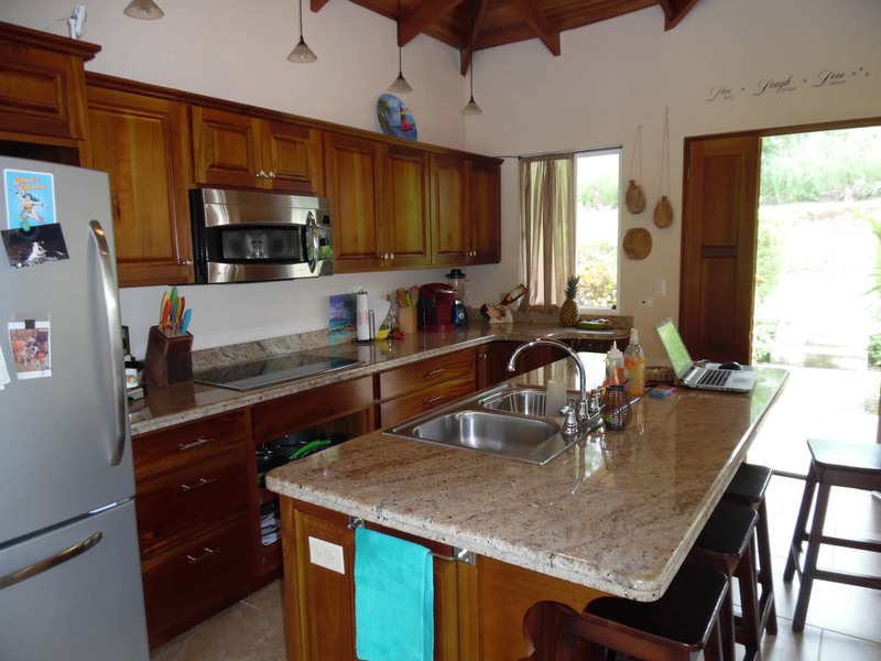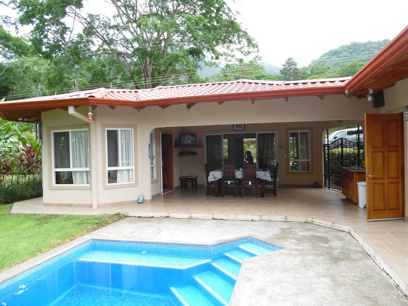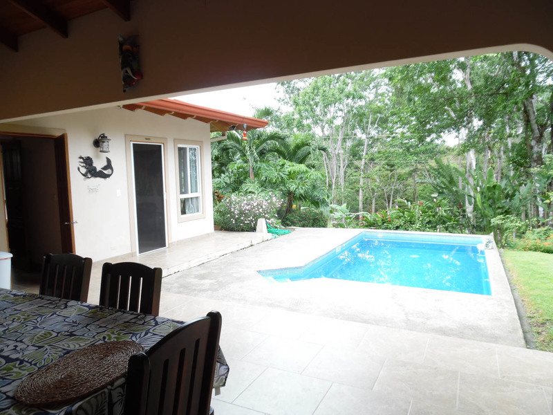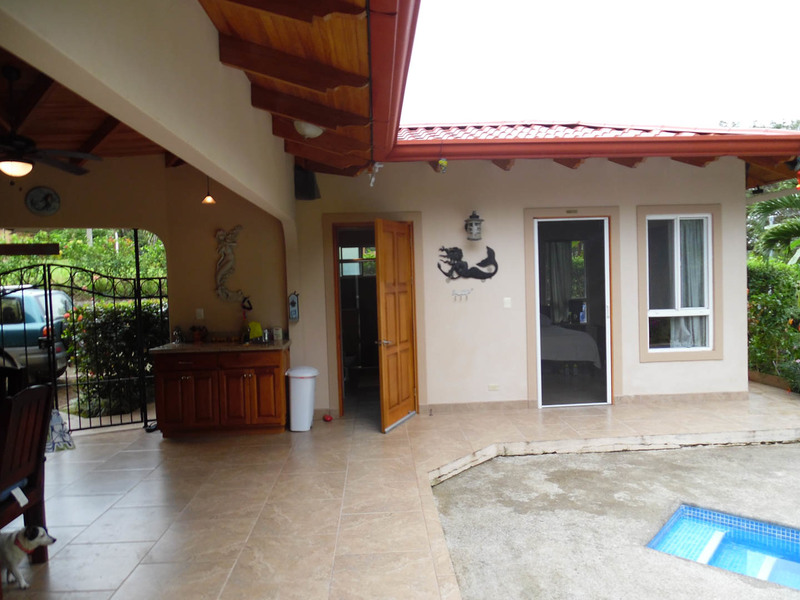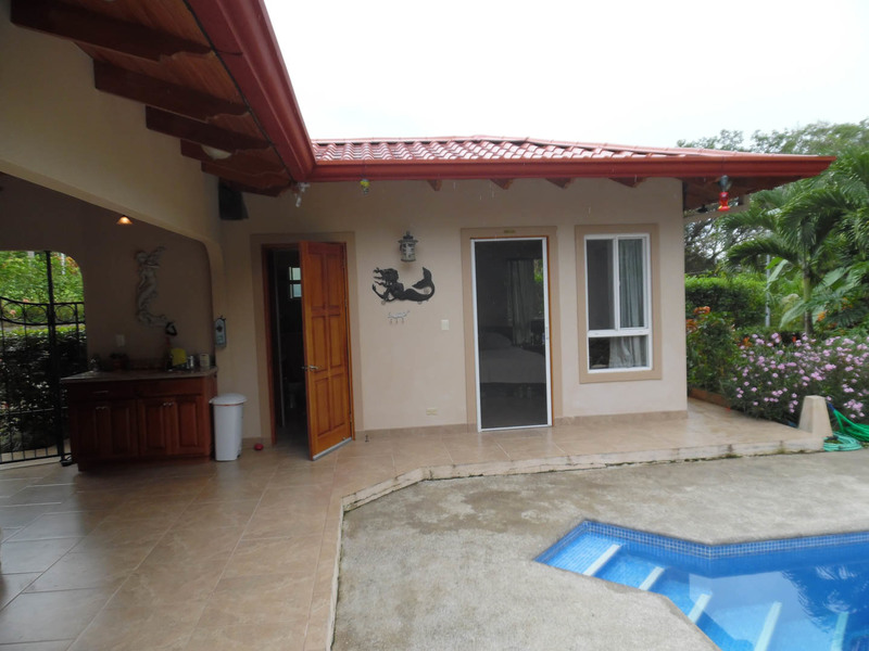 This well built and well maintained 2 bedroom, 1200 sq ft home is situated on a large lot (1200m2) in a gated community. The current owners have created a wondeful, relaxing space, with room for expansion, as well as more garden. The colorfully landscaped lot is fully fenced, double sized; and has an ocean peek with dramatic sunsets. The house features a covered large dining and entertaining area, pool, dry room, storage area, laundry room, kitchen/living area with eat-in bar for 4, and both bedrooms have complete ensuite bathrooms. This house is fully equipped with top of the line appliances, small appliances and everything needed. Pack your clothes, pick up some groceries and move in. This comfortable house must be seen to appreciate the beauty and tranquility.