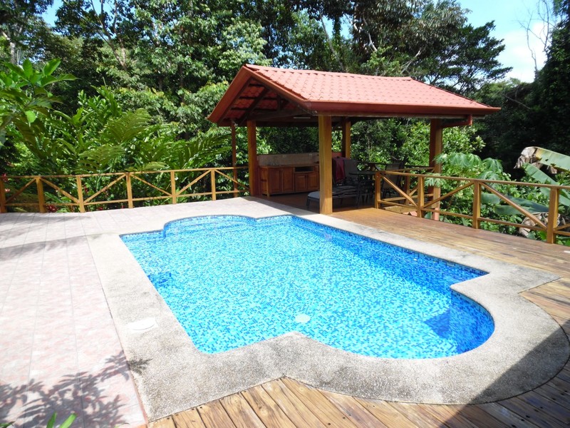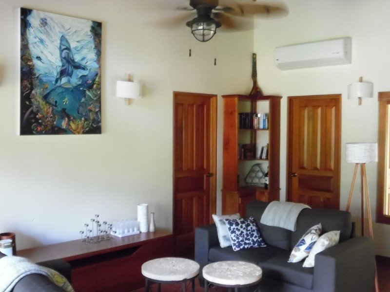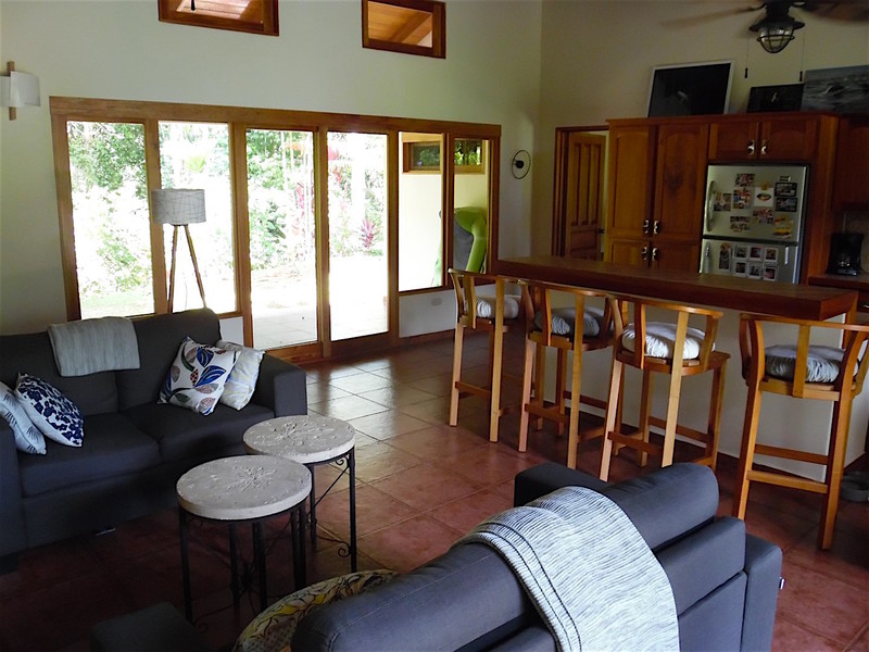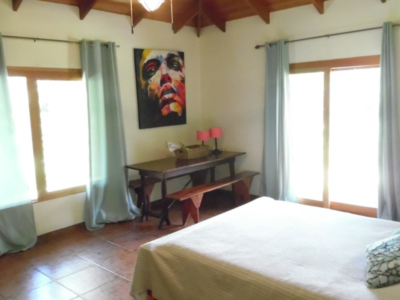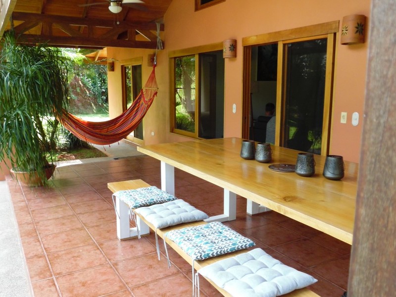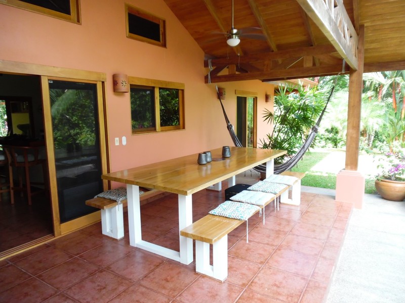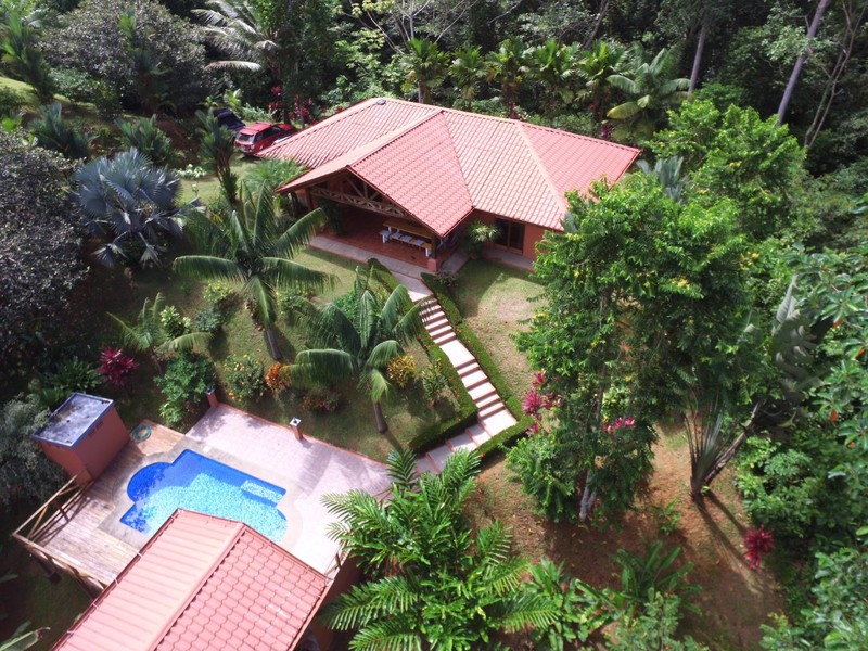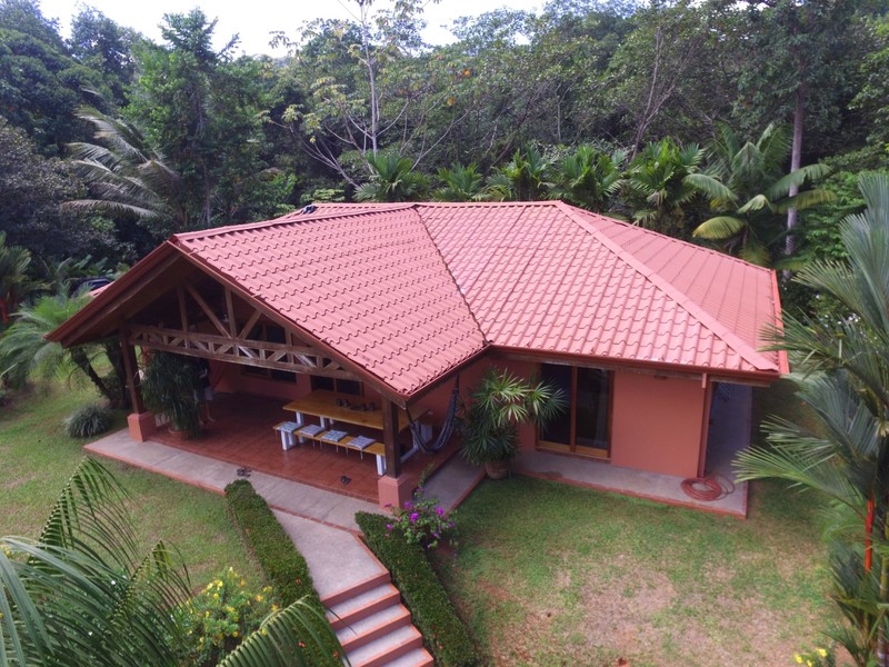 This spacious home is located in Finca Maranon, nearby the center of Ojochal. This home was built in 2012. It sits on a large 1.83 acre lot with mature landscaping and beautiful jungle surroundings. It features two comfortable bedrooms and two bathrooms, laundry room and there is also safe room for storage. A paved walkway allows access to the pool and rancho. This home is nicely decorated and is sold fully furnished.
