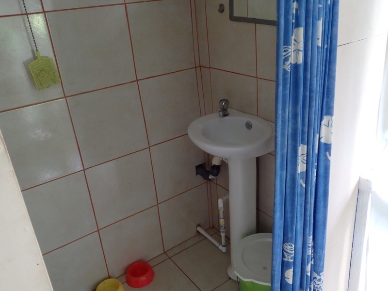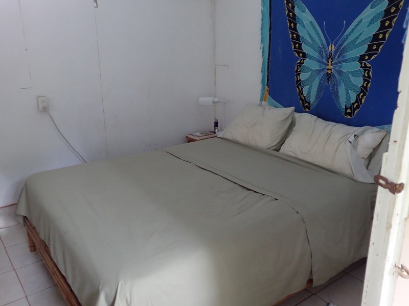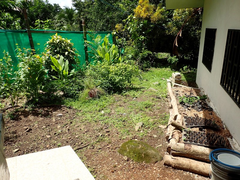 Outside there are mature fruit trees including mango, star fruit, and papaya.