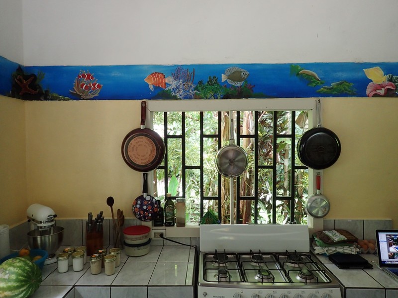 Three things will immediately catch your eye in the this home: first, it is on the main road of Ojochal but hidden away by a driveway through lush plants and trees, second, it has a refreshing 12' X 18' pool in complete privacy, third it has an oversized kitchen/dining area that becomes the central gathering space for the home.