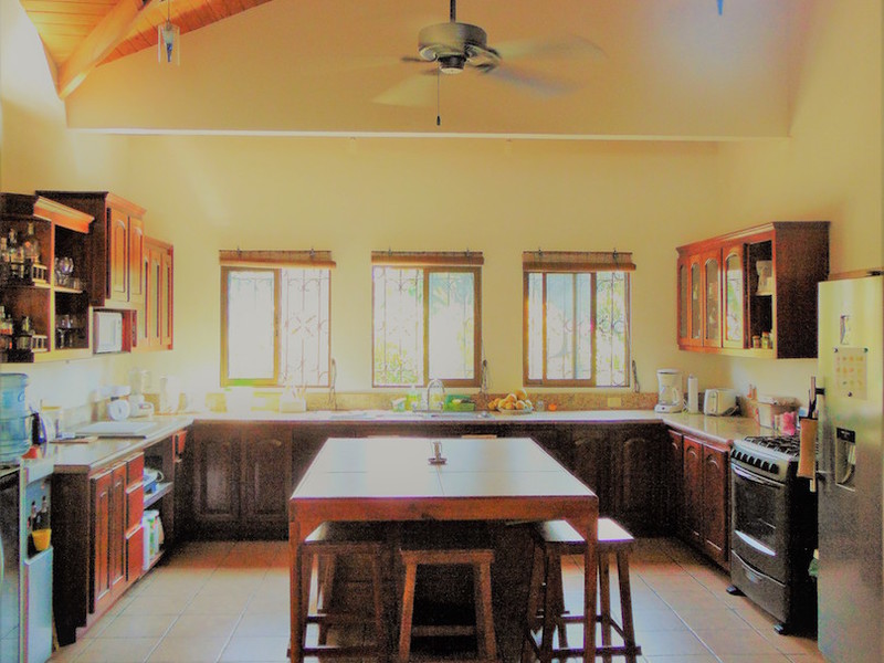 This gorgeous 2 bedroom 2 bathroom, 153.5 m2, single level bungalow is located in a quiet neighborhood on a private road in the heart of Ojochal. Super easy access with only 2-wheel drive required and a very short distance from the paved road. It is fully furnished, includes all appliances, has AC in the bedrooms and has a ceramic construction swimming pool. The property is over an acre in size with breathtaking mountain views. It is gated and has a fenced yard with a wide range of tropical fruit trees and beautiful gardens! The home has a huge kitchen that opens into the living room and a large outdoor living area, a 1 car garage and additional 2 car carport. There is also a charming little cabina separate from the house with a kitchenette and bathroom. This is a motivated seller!