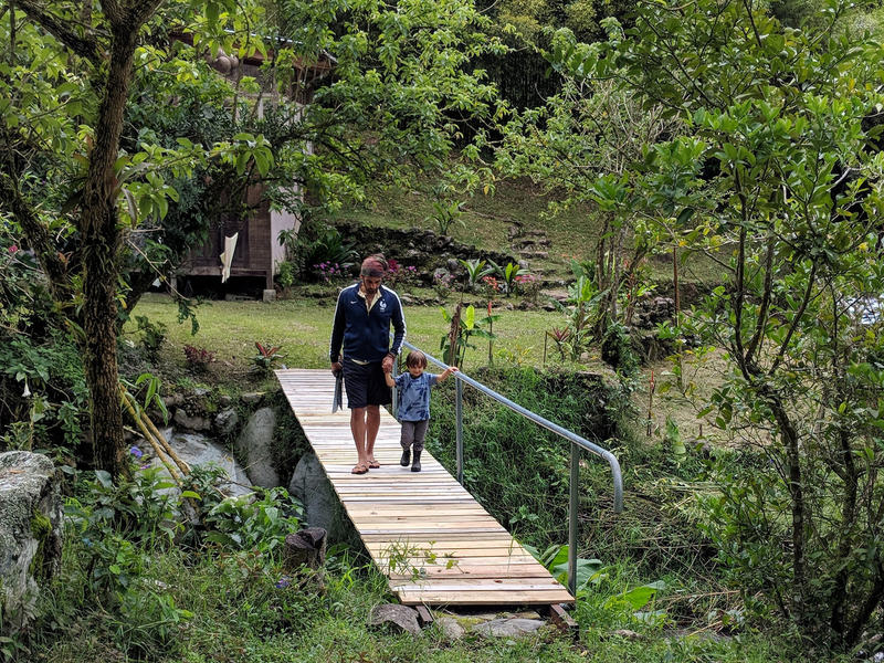 The front yard of the property is flat and has plenty of space for creating more garden beds and even a small fish pond. Across the river a path up the hillside leads you to a lovely lookout of all the surrounding mountains and a great place to built rancho or yoga deck.