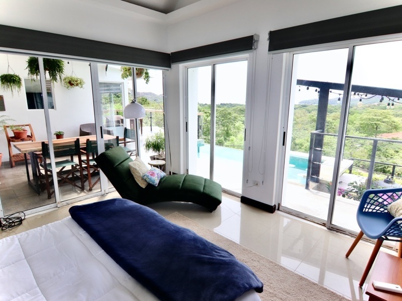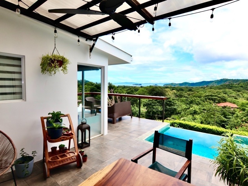Enjoy this charming home in a small community, a boutique neighborhood made up of only 7 homes. This modern ocean view home is tucked away in green mountains of Coco, yet it is still close enough to the beach, restaurants, and all amenities. One bedroom can be found on the first floor, next to a bathroom, with nearly floor to ceiling windows allowing for incredible views, lots of natural light and quick access to the pool and backyard. The master bedroom is located on the 2nd floor with an en suite bathroom and large walk-in closet. It also has a private door which can access the outside patio and pool via stairs. This home is absolutely perfect for bbq's and entertaining, just open both glass doors on the first level to expand and combine indoor living with outdoor living, just as it should be in Costa Rica, then relax and enjoy! The house comes fully furnished and equipped, so it is absolutely turnkey. It can be a personal, new Costa Rican home for someone, or be used as a vacation rental, or both!
