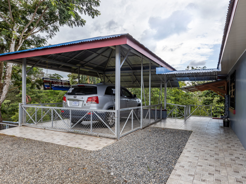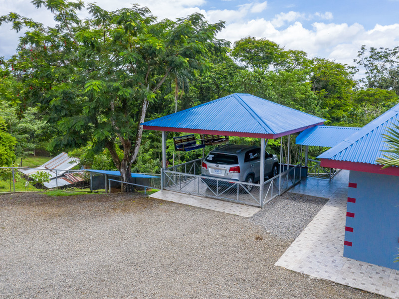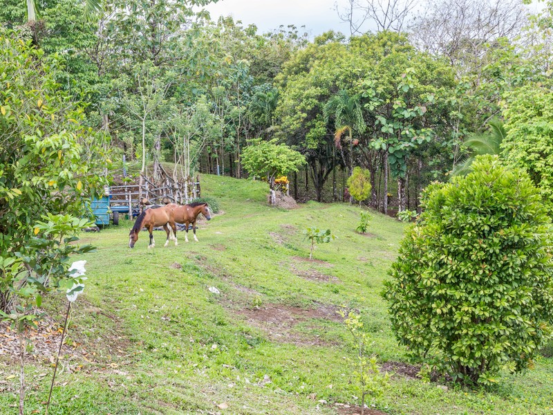 The property has 225 m2 of house, a river, a **natural spring**, a wide variety of fruit trees, a small stable for lovers of horses and any other grazing animal. Enjoy beautiful sunsets from the very large terrace on the backside of the house. The home has 2 very large roos with its own bathrooms. The house is completely secured and gated all the way around for owners that love to have dogs or any other pets. We are just 3 minutes from the community center, where you can find a pharmacy, supermarkets, ATMs, gas station, restaurants, schools, hardware stores, among others. Call Coldwell Banker Pura Vida Paradise today for a showing!
