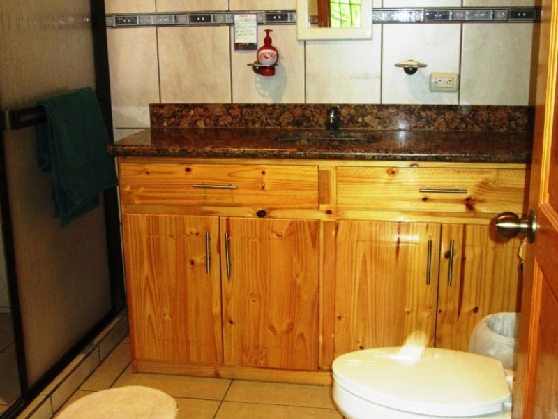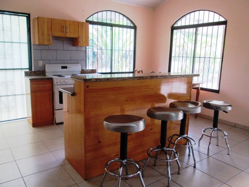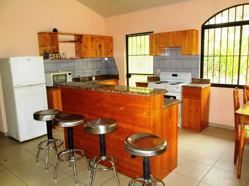 The home has an open plan living room and kitchen área with high catedral ceilings. There are two ample bedrooms, one with a private bath. The location is private and peaceful with an abundance of birds and monkeys passing through. Paquera has several seafood restaurants, two large supermarkets, a local bank, a gas station, an excellent large medical clinic, a police station and several small hotels.