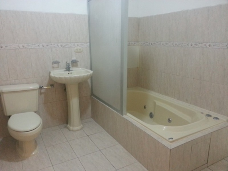 Casa de Dos Plantas en Residencial en Guchipelin de Escazú First floor: Living room, dining room, kitchen with granite countertops, cobbled terrace or patio, laundry room, and guest bathroom. 24/7 private security ($ 50 dollars included). 2 car garage under roof and with electric gate. • Second floor: Master bedroom with walk-in closet and tub, additional bedroom with mesh closet and bathroom with shower • Measure: 180 m2 construction. Small pets are allowed (no grass). The residential has a playground with an area for events, soccer field, orchard and others.