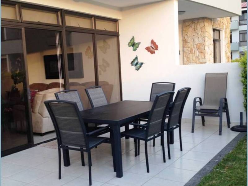 This apartment is in the ground level of the tower in the complex so there are no stairs to climb or elevator to take. It features are 175 square meters of construction, living room, dining room, kitchen with granite countertops, 3 bedrooms, 2 bathrooms, parking for 2 cars, terrace and a lovely garden. A very smart layout idea for a young couple with children or retired couple. It has yard, it is also ideal for those who have pets...Without a doubt this is one of the best condos in the Central Valley area.