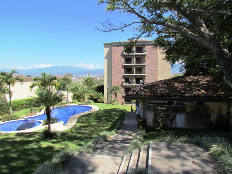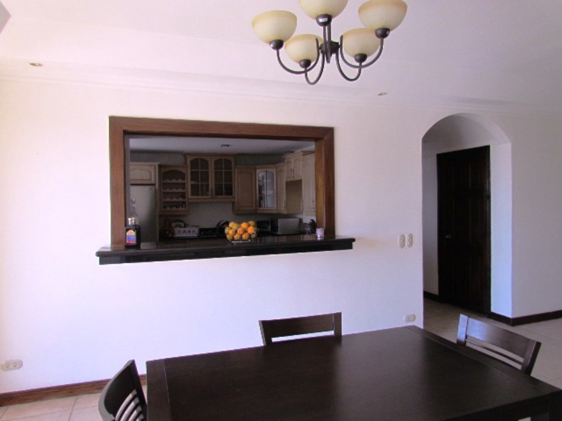 This spotless and gorgeous apartment with 3 bedrooms and 2.5 baths, Located in Escazu in a 4th floor has large windows looking out over the City. With stunning views to the north, east and west of the City you get the best of day and night. The condo hais open concept kitchen with granite countertops and wooden furniture, and at the same time, has the option of separating it if wanted. The apartment has a living room, dining room, guest bathroom, comfortable balcony to appreciate the viwes, T.V. room or office, a master suite with large bath and walk-in closet, a second bedroom with a closet, a third bedroom with closet and a full bathroom to be shared by the last two. Separate laundry room, maids bedroom with a full bathroom plus 2 underground covered parking spaces and a storage room. The building offers a very nice pool, a tennis court, a clubhouse and 24 hour guarded security, It is conveniently located very close to everything in Escazu (banks, supermarkets, restaurants, shopping centers, schools, hospitals). Certainly it is the Best priced Condo of its type in Escazu!