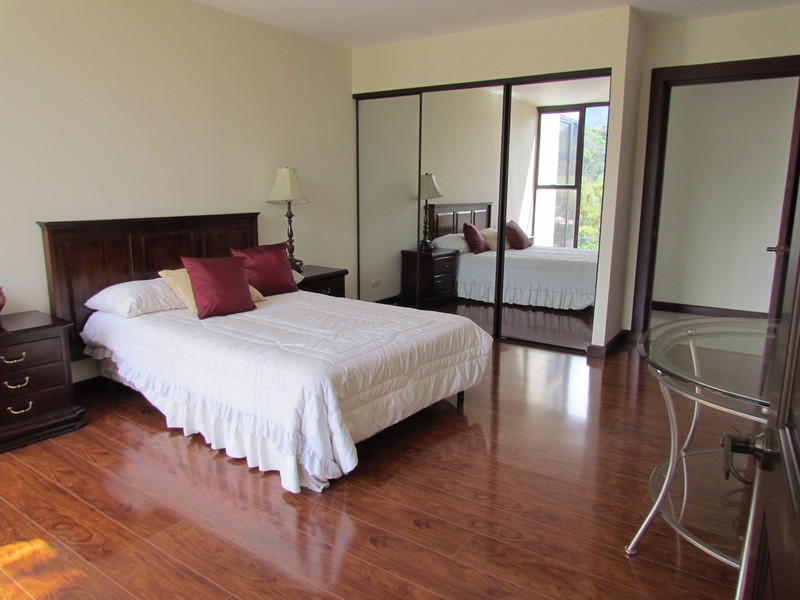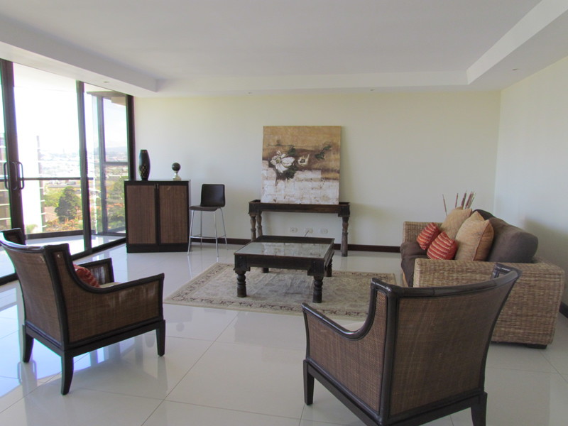 Elegantly Furnished 3B Apartment With Panoramic Views For Rent In A Luxury Condo in Escazu. Located a few minutes from all services and easy access to the Route 27, this luxury condominium offers great amenities like a pool, gym, clubhouse, playground and 24/7 security. This apartment has breathtaking panoramic views of the city and the valley. With its great size of 330m2, the living room is huge and is extended by a terrace. The bedrooms are spacious and have wood laminate floors, the bathrooms have marble. The kitchen has luxurious finishes, some storage places and a pantry; there is also a laundry room and maid’s quarters. What really makes this apartment special, other than the luxury finishes, is that you can enjoy a beautiful view from every single room. This apartment can also be rented unfurnished at $2,500 and is available for sale at $435,000. We have various options in this condominium: from 240m2 with 2 Bedrooms at $310,000 for sale or $1,750 for rent, to 330m2 with 3 bedrooms at $480,000 for sale or $2,500 for rent unfurnished, depending on size and floor. Call us today to see our options.