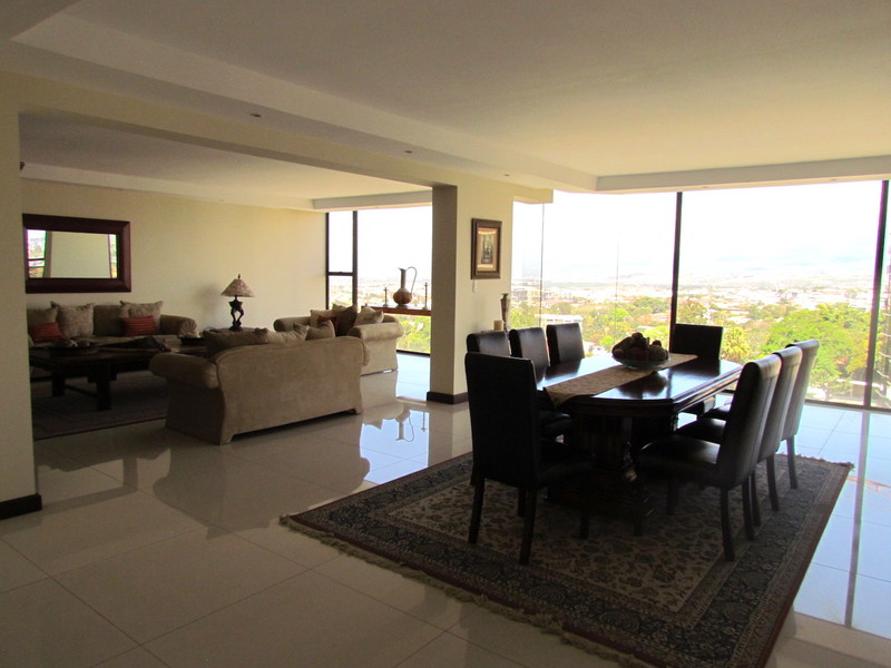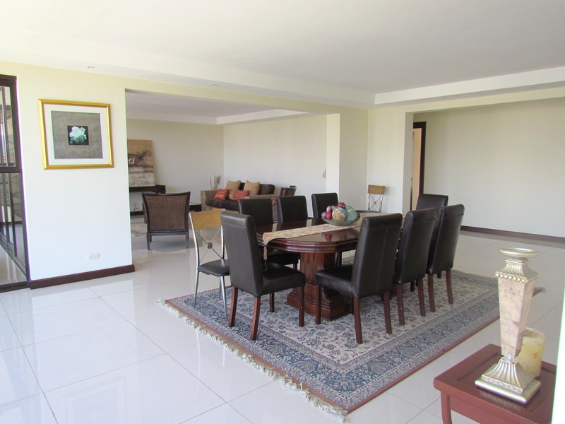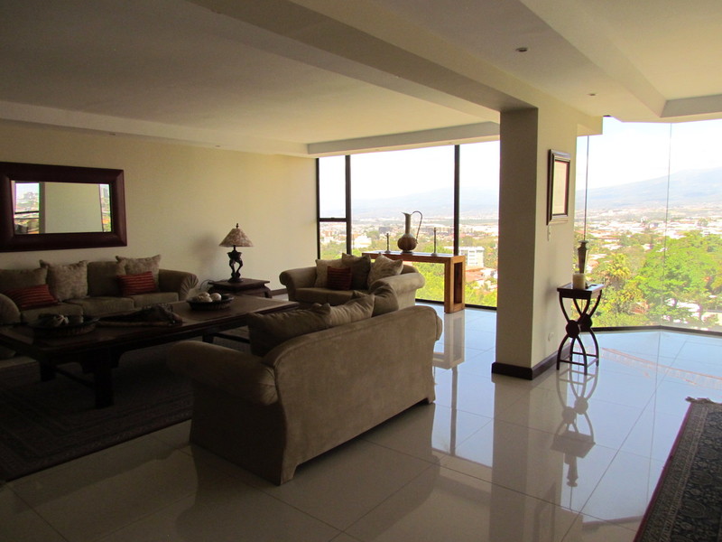 Elegantemente amueblado Apartamento De 3 Habitaciones Con Vistas Panorámicas Para Alquiler, En Condo De Lujo En Escazu. Situado a pocos minutos de todos los servicios (supermercados, farmacias, bancos, restaurantes, etc.) y fácil acceso a la Ruta 27, este condominio de lujo ofrece excelentes áreas comunes como: una piscina, gimnasio, casa club, parque infantil y seguridad 24/7. El apartamento tiene impresionantes vistas panorámicas de la ciudad y el valle. Con su gran tamaño de 330m2 internos, la sala de estar es enorme y se extiende hasta su terraza. Las habitaciones son amplias y tienen pisos laminados de madera; los baños tienen sus muebles con sobre de mármol. La cocina es moderna, con acabados de lujo, muchos gabinetes y una despensa; área de pilas (lavandería) y cuarto de servicio con baño completo. Lo que realmente hace este apartamento especial, aparte del espacio y los acabados de lujo, es que se puede disfrutar de una hermosa vista desde cada habitación. Este apartamento está también para alquiler sin muebles a $2,500 o para la venta a $435,000. Tenemos algunas opciones en este condominio: desde 240m2 con 2 Habitaciones en $310.000 a la venta o $1.750 en alquiler, hasta 330m2 con 3 Habitaciones en $480.000 a la venta o $2.500 en alquiler, depende del tamaño y del piso. Llámenos hoy para ver nuestras opciones.