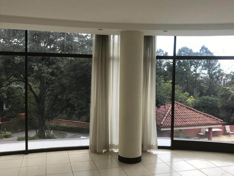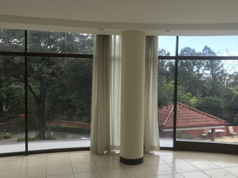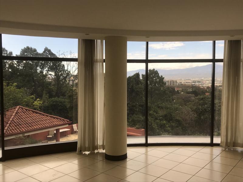 Bonito Apartamento de Tres Dormitorios en San Rafael de Escazú El edificio se conforma por 6 apartamentos (uno por piso). El edificio cuenta con: Sala de reuniones con terraza y 2 baños, piscina y casa club con baño, seguridad 24 horas, Parqueo de visitas, planta eléctrica de emergencia. Descripción del apartamento: 360 m², 3 dormitorios, 3 1/2 baños con sobres de mármol. El baño principal tiene jacuzzi. Sala, Comedor, Cocina equipada por Euromobilia, con sobres de granito. Área de pilas, baño de servicio y alacena Sala de TV El dormitorio principal y el dormitorio #2 comparten una pequeña terraza. Cada dormitorio tiene su baño completo, el dormitorio principal y el #2, tienen walk-in closet. El dormitorio #3 tiene closet normal. Cada apartamento tiene aire acondicionado en los dormitorios y en la sala. Cada apartamento tiene una central telefónica. El dormitorio y baño completo de servicio se encuentran fuera del edificio. Cada unidad tiene asignados dos espacios de parqueo en el sótano, un espacio de parqueo al aire libre y una bodega de almacenaje. El condominio está ubicado en San Rafael de Escazú, a 200 metros de Plaza Atlantis, donde se encuentra el Automercado, la Farmacia Fishel, un video club, etc . Es bastante céntrico, pero ofrece una gran privacidad.