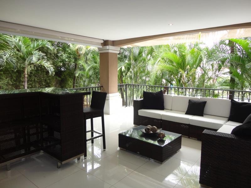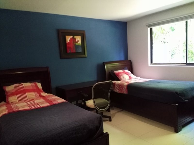 The apartment is located in the Vía Nova Condominium, in a 3-story tower with large green areas, three swimming pools, jacuzzi, clubhouse, tennis court, two BBQ areas, children's games and 24-hour security. The apartment has a living room with air conditioning, a very spacious dining room, a fully equipped integrated kitchen with all its stainless steel appliances, an open terrace, and a laundry area with a service bedroom with a full bathroom and a TV room In the private area of the house there are two large secondary bedrooms with their respective closets and a shared bathroom. The main bedroom is very spacious with air conditioning, WC, excellent natural lighting and a very comfortable bathroom. The maintenance fee is included in the rent, pets are not accepted.