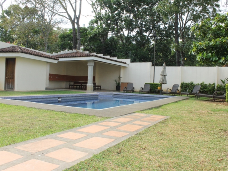 Nice home in a safe and quiet condo with a great location just minutes from San Jose city. Also close to malls, supermarkets, hospitals, schools and public transportation. The house has two levels, in the first level is the living room with half bath, TV room, dining room and kitchen with granite countertops and island. On the second level is the master bedroom with a very good size, a comfortable bathroom and walk in closet. There is also a TV room and two bedrooms that share a bathroom. The house has maid´s bedroom with its bathroom and two car garage and a little bodega. The condo has a nice pool, ranch, playground, parking for visitors and lots of green areas. This is a nice house to fully enjoy it !