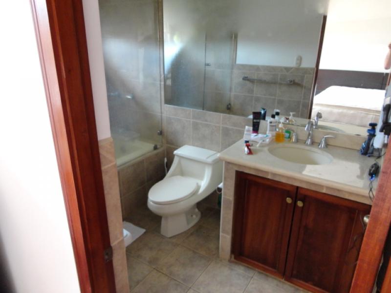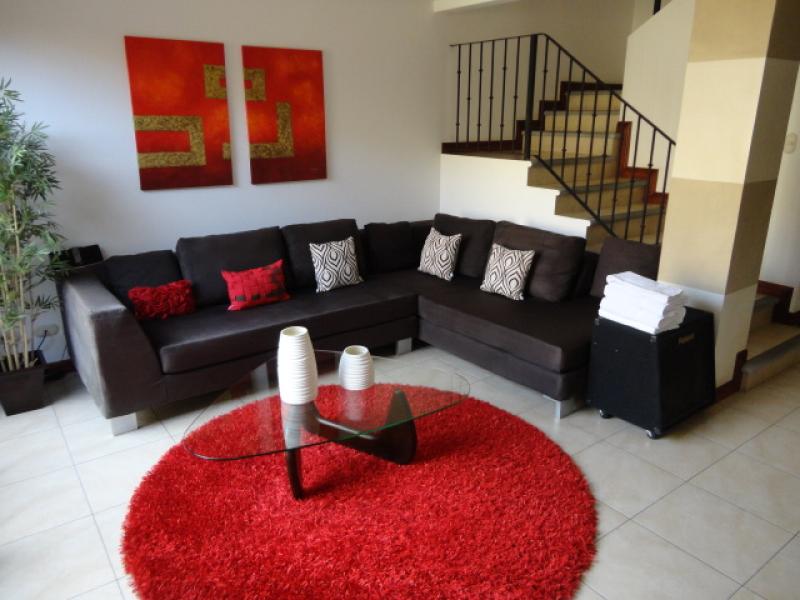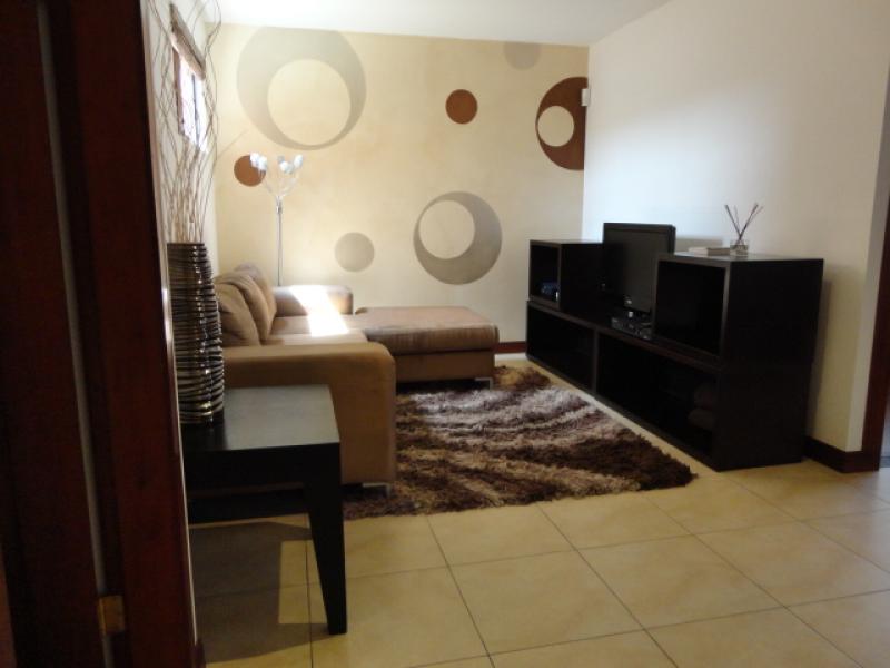 Beautiful house in a nice condo located in Escazú. The condo has two ranches, 2 pools, playground, nices gardens, tennis court and 24/7 security. In an excellent location close to schools, supermarkets, shopping centers, banks, office centers and just minutes from the airport. The house has two levels plus a mezzanine. On the first level is the living room, the dining room, a large terrace with a friendly atmosphere and the garden of the house. There is also the guest bathroom. On the second level there are two rooms that share a bathroom and a large master bedroom with a bath and a spacious walk in closet. At the third level you can enjoy a spacious and comfortable mezzanine with a wide closet. The house has a two car garage and an utility room.