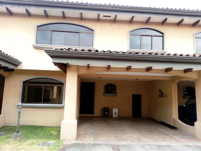 Casa de 2 pisos con 3 dormitorios en venta en Escazú: Esta es una muy bonita casa en venta en una pequeña comunidad cerrada familiar en Escazú. Mide 196 metros cuadrados de construcción y 205 metros cuadrados de terreno. De fácil acceso desde la autopista, a pocos minutos en carro del centro comercial Multiplaza. Las características de la casa en la planta baja son: en el primer piso, la cocina de concepto abierto integrado con el comedor, sala de estar, baño de visitas, oficina / estudio, area de lavanderia, un bonito jardín con gran cantidad de plantas, y arriba, en la segunda planta hay tres dormitorios y dos baños. La habitación principal es con walk in closet y baño con doble lavamanos y tina. También, la casa cuenta con 2 espacios de parqueo, además de parqueos de visitas. El condominio cuenta con acceso controlado con seguridad 24/7, y definitivamente es una bonita casa en un condominio privado y tranquilo, cerca de excelentes restaurantes y grandes escuelas!
