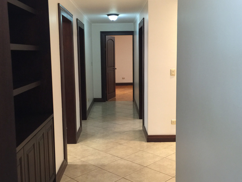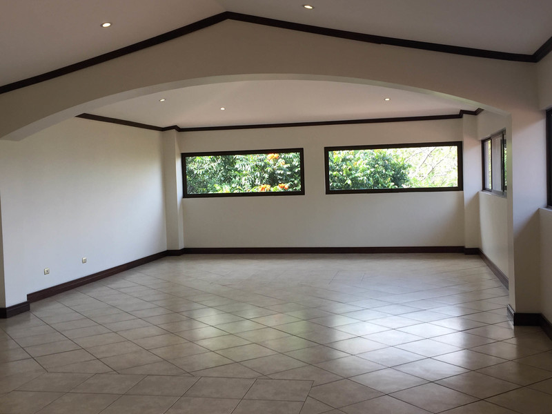 Single-story house in Escazu for sale with an excellent location: If it is very important for you to have a peaceful and quiet place to live, here you have it all. This 350 sqm house is located in a small project with only 5 houses. This home has 3 bedrooms, 2.5 baths, guest bathroom, a spacious living room and formal dining room. Also you can enjoy of a casual reading area, family room or a TV room, in this nice space you will enjoy a beautiful view of the mountains, volcanos and city views. The kitchen has granite countertops and a pantry for your convenience. There is a maid´s bedroom with private bathroom, laundry area, storage and 2 parking spaces. All finishes in the house are beautiful, and the rooms have hardwood in floors (Teak). You can also found excellent finishes in the kitchen and bathrooms. Come and start to enjoy your house!