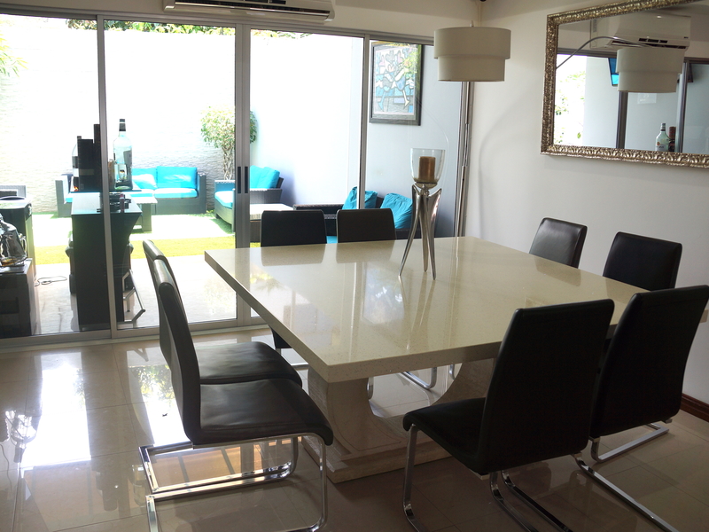 Hermosa Casa 3H Para La Venta En Urbanización Cerrada Pequeña En Santa Ana. Esta casa se encuentra muy bien ubicada, en Santa Ana. Cerca de bancos, comercios, prestigiosos colegios, excelentes restaurantes, supermercados, centros medicos, entre otros. Este es un condominio de tan solo 6 casas, con piscina y area de recreo, tiene doble seguridad, y la cuota de mantenimiento es de $110 por mes. La casa es de dos niveles, los pisos son en porcelanato, tiene 230 metros cuadrados de construcción. En la primera planta, hay una amplia sala de estar con una cocina abierta que conduce a un hermoso jardín privado. En el segundo piso, el dormitorio principal tiene un baño completo y vestidor y los otros dos dormitorios tienen un cuarto de baño a compartir. Toda la casa está llena de luz natural. Dos plazas de aparcamiento cubiertas están asociadas a la casa. Esta casa también puede ser vendido con todos los muebles italianos y suizos. Tambien en alquiler en $1.580/mes. Llámenos ahora, si usted no quiere dejar pasar esta oportunidad!
