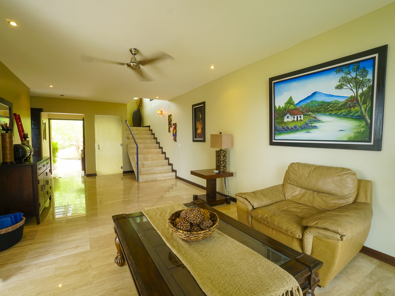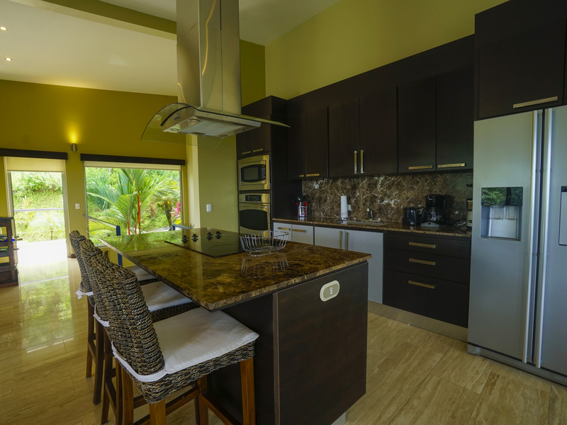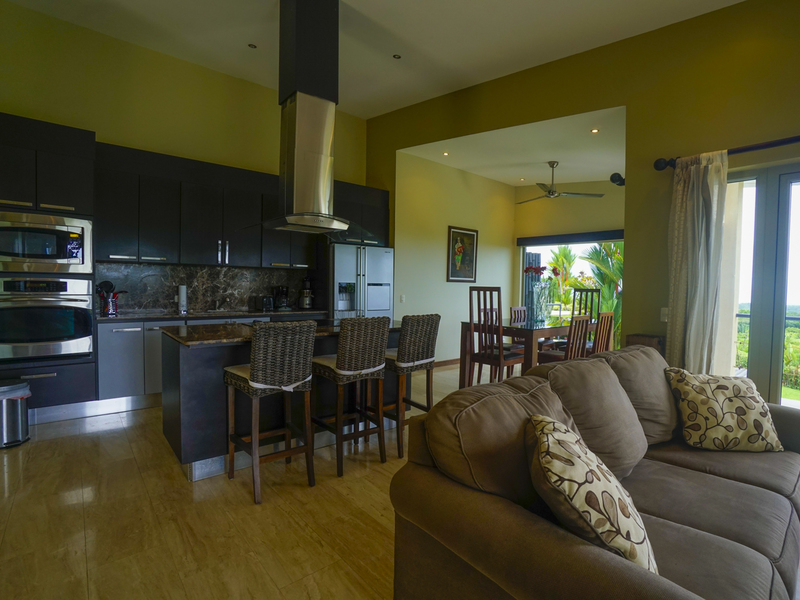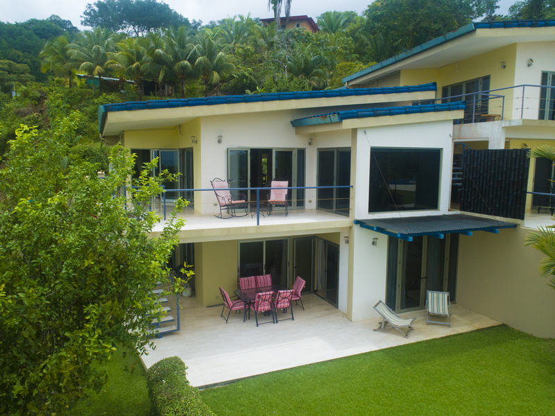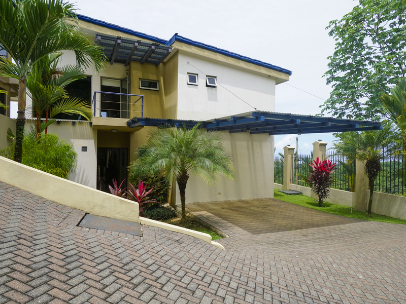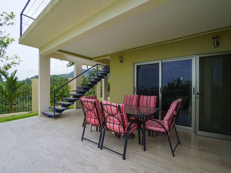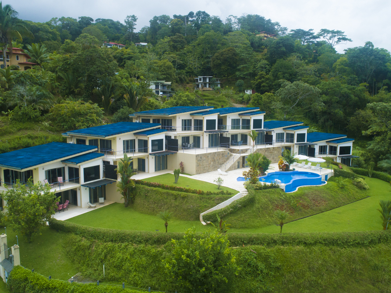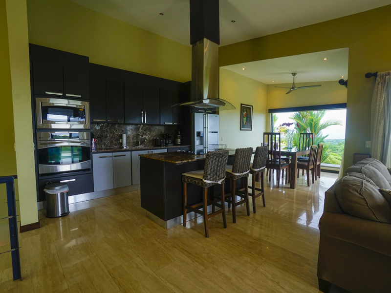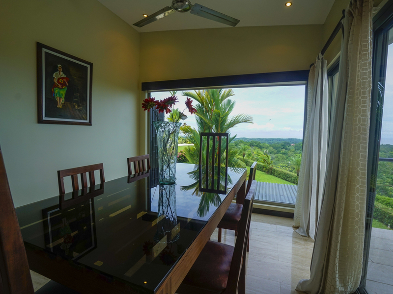 This luxury contemporary designed villa overlooks the stunning Whale Tail of Uvita. Located only minutes from beaches and all amenities. This property is one of six luxury villas with stunning panoramic views of the ocean and mountains. The villa has 3 bedrooms and 3.5 baths with an open concept living space. There are many features that make this special including European style cabinetry, high-end finishes, beautiful travertine stone floors, AC and fans in all rooms, 24-hour guard, resort-style infinity pool and covered parking area. Step out to your own private deck with incredible ocean and sunset views. Easy access on a well maintained paved road. Excellent rental property with high producing revenue.