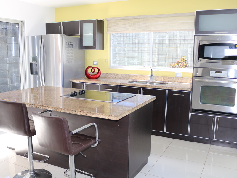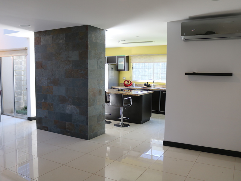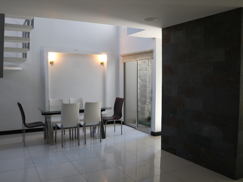El primer nivel tiene una amplia sala de estar, el comedor tiene un techo alto que le brinda mucha calidez a la casa y permite la entrada de luz natural haciendo un espacio luminoso. Cuenta con una hermosa cocina con encimeras de granito y gabinetes agradables. La casa tiene un lavadero.