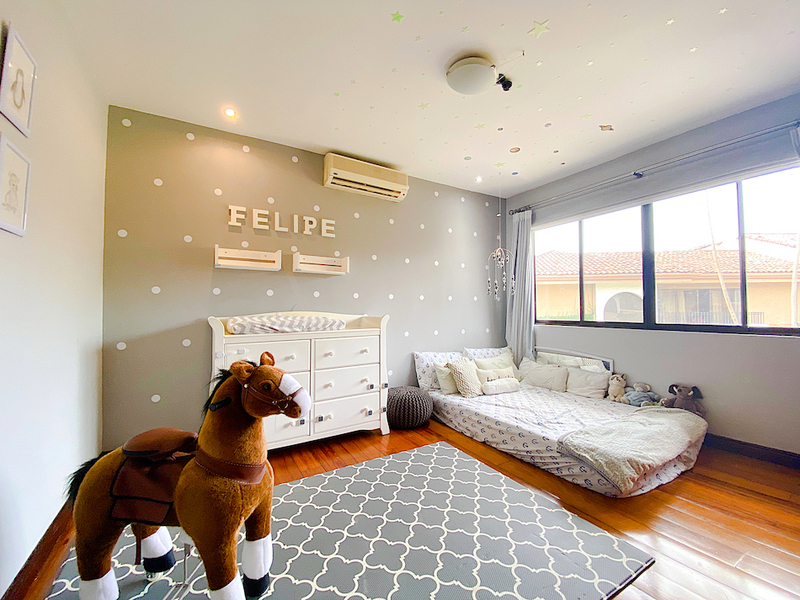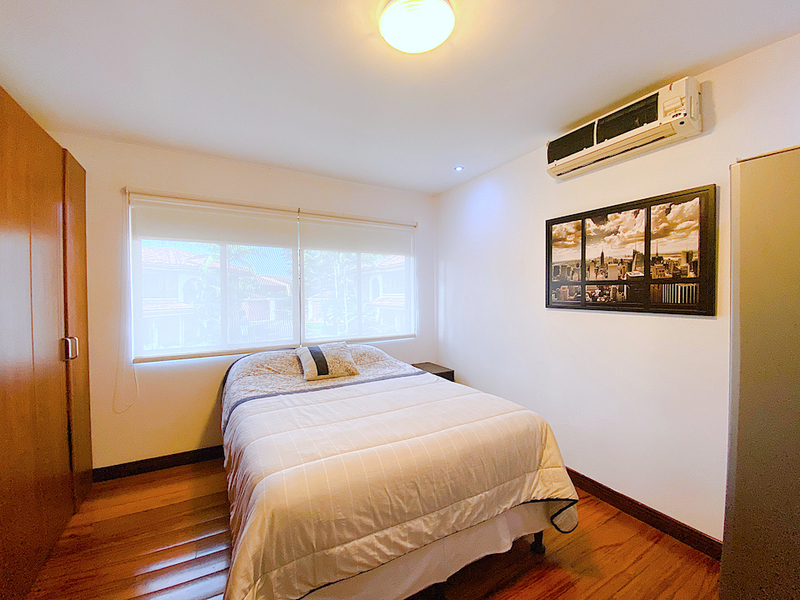 The house comes with nice finishes such as porcelain tile in social areas, and hardwood floor in the bedroom, blinds and blackouts, and also, air conditioning in all areas.