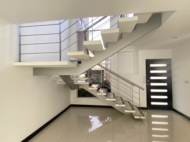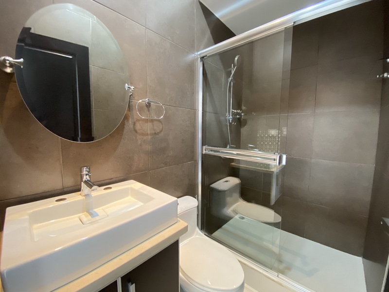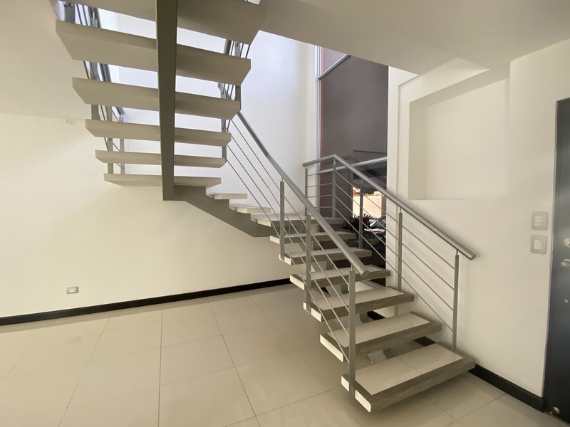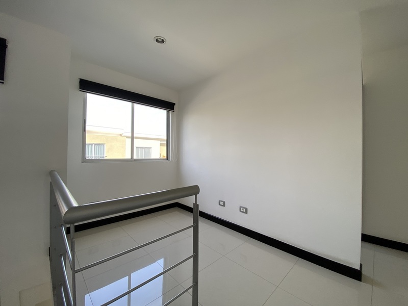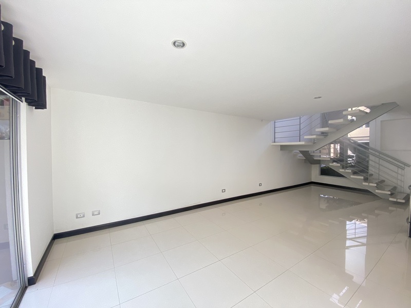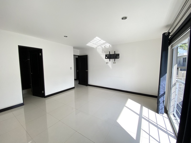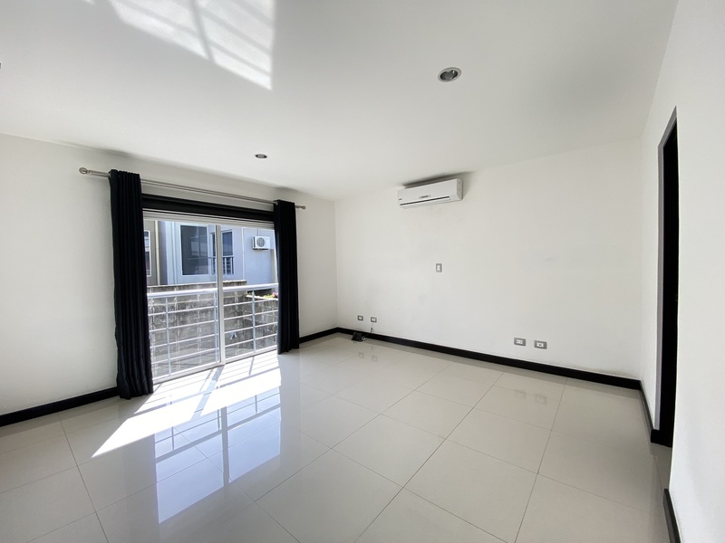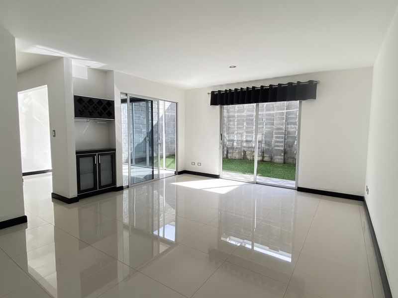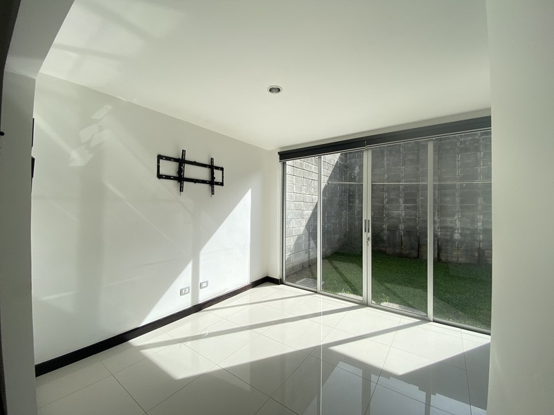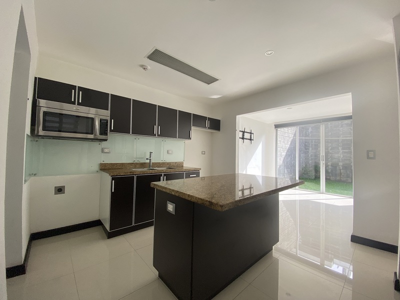 For Rent, Modern House 3B, 2,5B in Gated Community in Santa Ana. Conveniently located in Pozos, close to all services, this condominium is perfect for families or people who want to socialize with their neighbors, thanks to its amenities: pool, kids pool, playground, clubhouse and security 24/7. On the first floor, there is an ample open space combining living room, dining room; guest bathroom; the kitchen with its island and granite countertops; TV area; a nice 50m2 garden; laundry room and a covered garage for two cars. On the second floor, the master bedroom has its own bathroom and walk-in closet, and air conditioning; the 2 other bedrooms have ample wall closets and share a second bathroom; and office space. The whole house has porcelain tile floors, contemporary finishes and lots of natural light as well. Call us now to book an appointment!