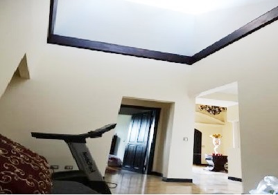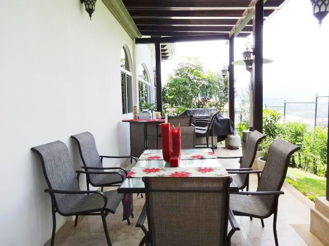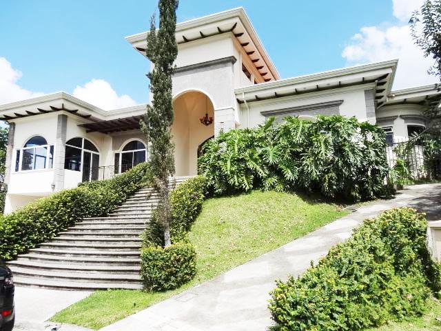 Bonita Casa en Condominio Exclusivo en Curridabat Con Vista Espectacular The Residence has a very elegant hall with double vaulted ceilings, dining room with space for 3 rooms plus the dining room and a "sun room", all with vaulted ceilings, a beautiful fireplace and a room that is used of Oratory with window of stained glass. Terrace with spectacular views; kitchen with granite countertops and island; battery room and utility room with full bathroom. On the other side of the house are the bedrooms each with private bathroom; the main one of very good size and with walk-in-closet; TV room and half guest bathroom. The garage is on a lower floor at street level, has a full bathroom, a cellar and provided for an elevator.
