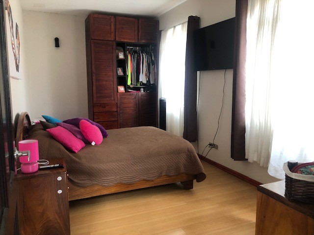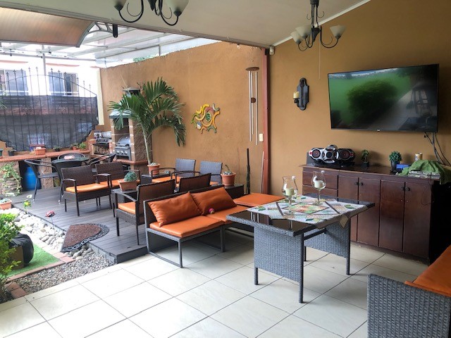 House with Pool for Sale in Hacienda Vieja de Curridabat. The house is located in a residential area with 24/7 security, it has a private pool and barbecue area with very good finishes. First floor: It has an extremely spacious dining room with a beautiful fireplace, large kitchen with granite countertops and island and wooden furniture, office, coat closet, wine cellar, laundry area and hanging area, garage for 2 cars, swimming pool and area of bbq with deck. Second floor: It has 2 large secondary bedrooms which share a bathroom with rain shower and very fine finishes. Master bedroom with views of the mountains, full bathroom with jacuzzi and walk in closet. Condo fee of only ¢ 30,000, pets are accepted.
