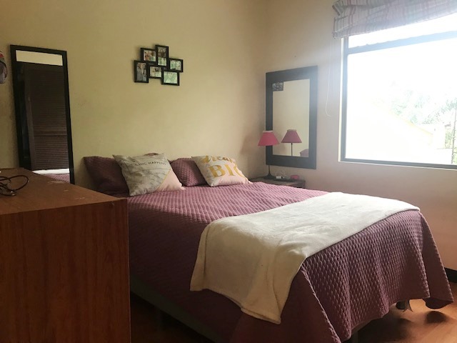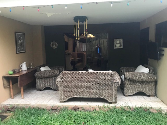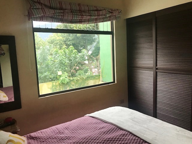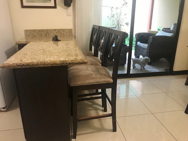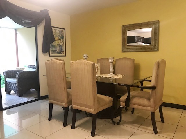 Bonita Casa de Dos Plantas con Buenos Espacios en Residencial con seguridad 24/7 en Tres Ríos, por Pasoca. First floor: guest bathroom, large dining room, kitchen with wooden furniture with granite countertops and breakfast bar, covered terrace connected to the rear garden. Covered garage for 2 vehicles, large laundry room. Second floor: TV room, 3 bedrooms, the main one with a walk-in closet with a full bathroom with Jacuzzi tub, 2 secondary rooms with a closet sharing a full bathroom. Porcelain floors on the first floor and laminate floors on the second floor. Includes existing curtains and lamps. Wooden bathroom furniture with granite countertops, a bowl in the sink and tempered glass in the showers. 24/7 security with controlled access, 21,000 colones per month of security fee are paid, pets are allowed, the residential has a park with a play area for children.