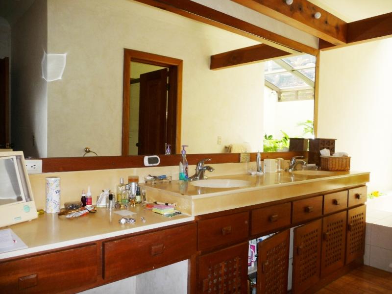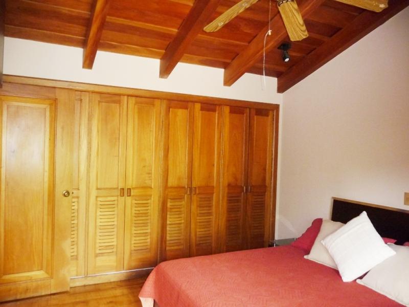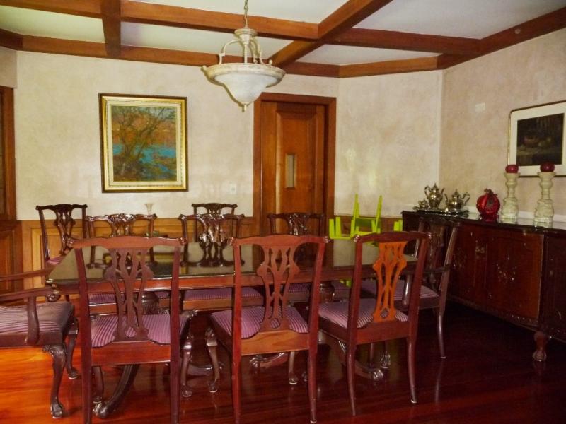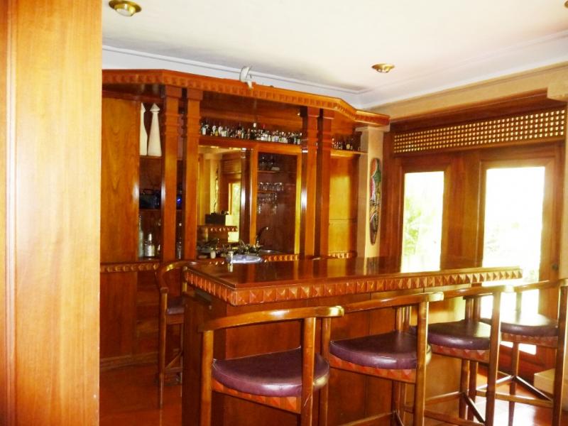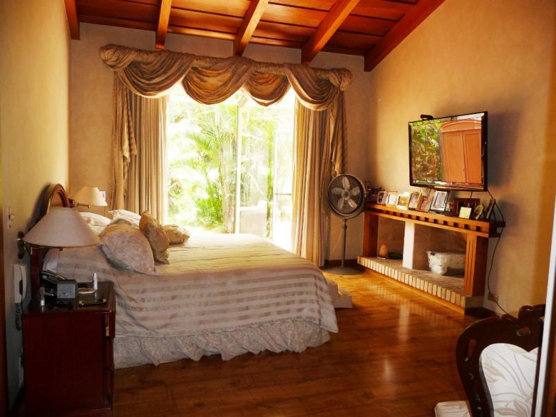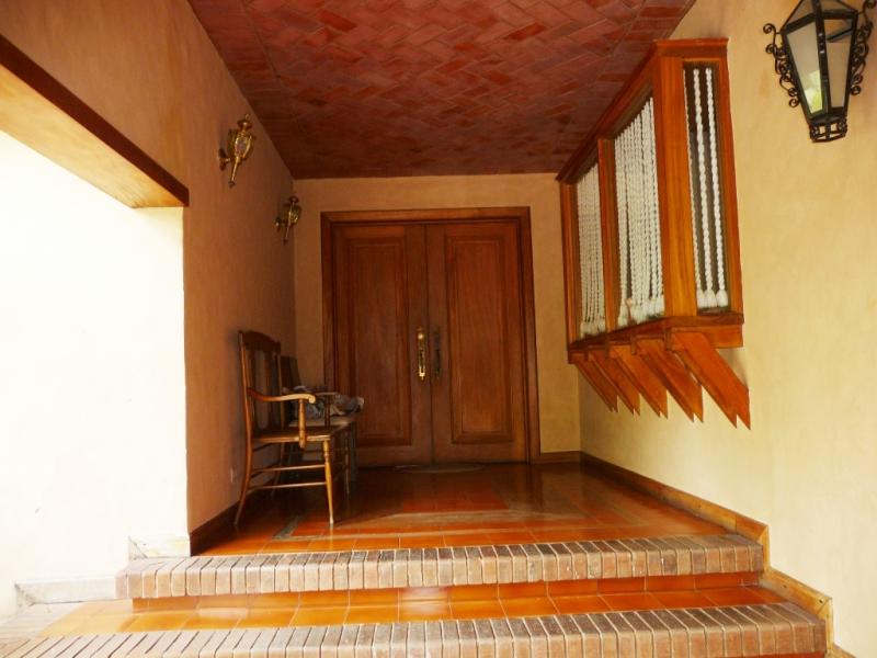 Bonita Casa de Una Planta en Guayabos de Curridabat. The home features fine woods on cedar coffered ceilings and other areas of the home. Double leaf wood entrance door, large hall, guest bathroom, spacious room with high ceiling with internal garden, large bar area (furniture not included) connected to the rear garden, large dining room, kitchen with Euromobilia-type furniture granite countertop with dining area, pantry. Service room for 2 people with double closet and full bathroom, laundry room, utility room, storage room, covered garage for 2 vehicles, 4 more inside the property in open space. 3 bedrooms, the main one with fireplace and living room in contact with the rear garden, walk-in closet, large bathroom with double sink, tub, shower, toilet and bidet connected to an interior garden, 2 large secondary bedrooms with closet of wall to wall with full bathroom each, TV room.