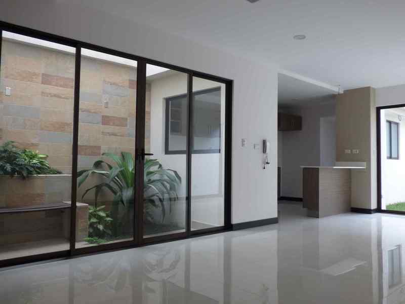 The house has two floors, in the first we find a covered garage, dining room integrated with the kitchen, half bathroom for visitors, laundry room and internal patio and rear garden, office,