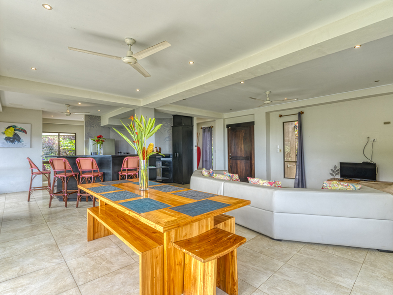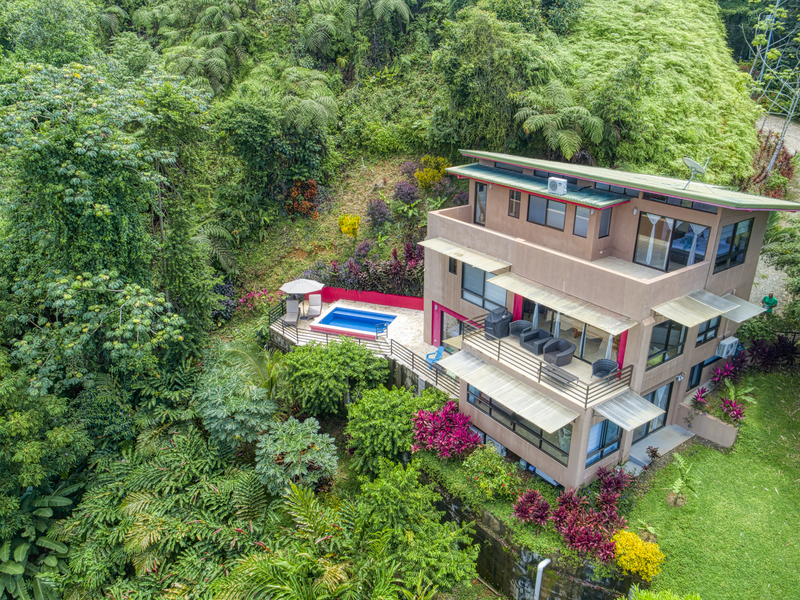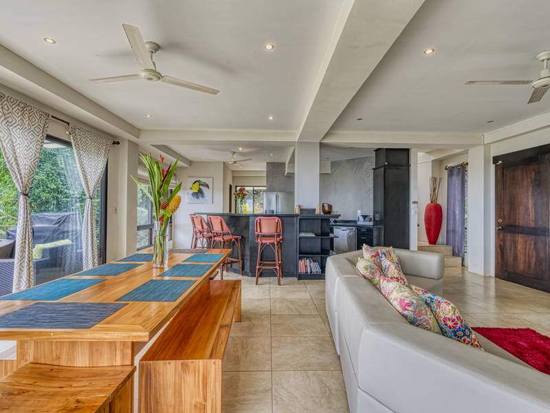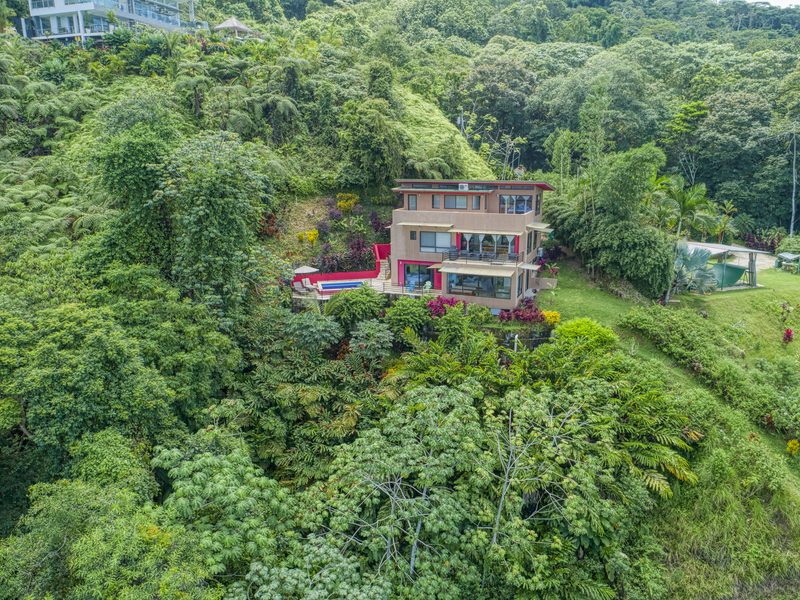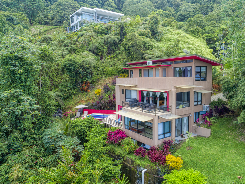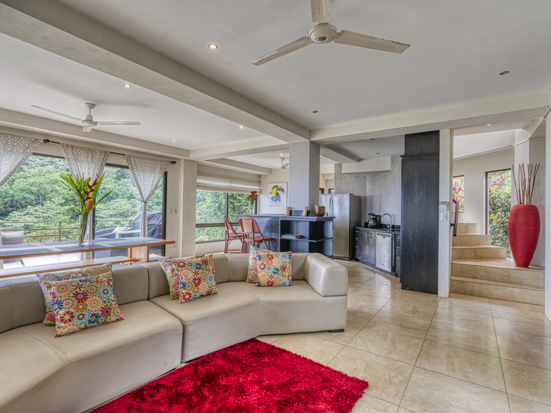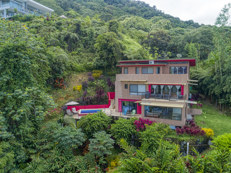 Imagine seeing colorful sunsets and ocean views from your luxurious Costa Rica villa in Dominical. Located in the Marina Vista 1 community, Casa Sunset features breathtaking views of the Mountains and the Pacific Ocean. Casa Sunset is tucked away between the coast and mountains, making it the perfect place to have a vacation home. You’ll feel like you’re living in your own rainforest jungle as the property is often visited by local wildlife and exotic birds. The 3-story villa with multiple outdoor terraces allows you to watch colorful sunsets, sunbathe around the infinity pool, or relax with a chilled drink. It comfortably sleeps six to eight people, making it a perfect choice for a vacation home or an investment opportunity.