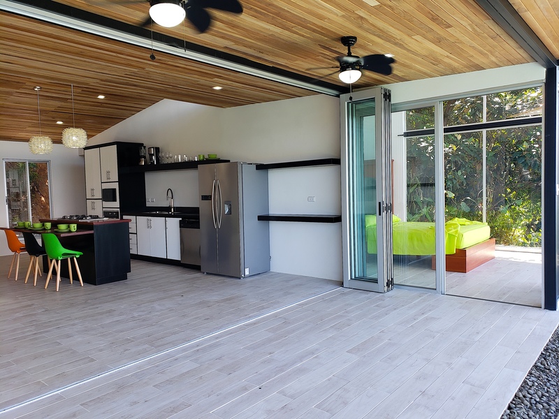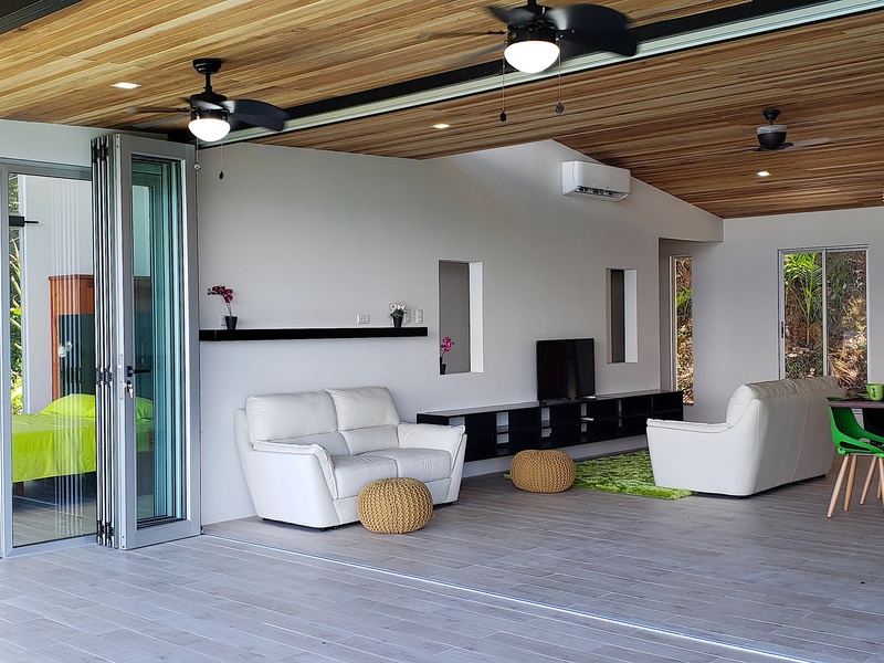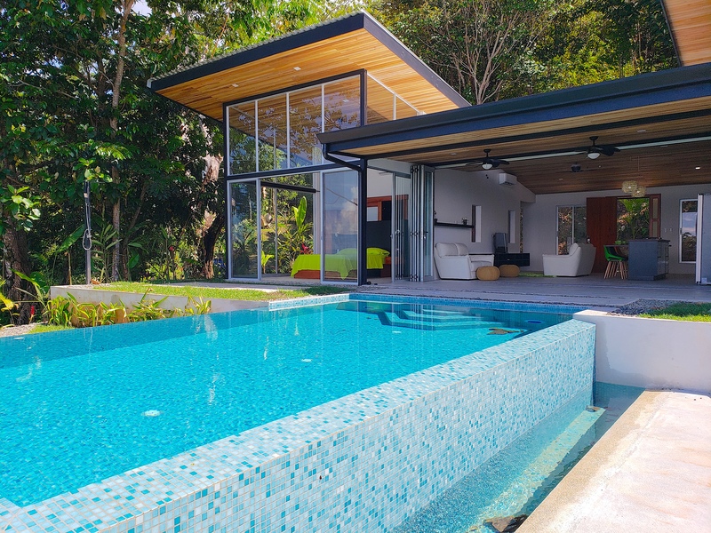 If you were looking or waiting for the right home with the modern looking close to Dominical, look no further... This home was finished this past September 30th, 2018. The home offers an open concept with the sliders and folding doors that open the main party area and the bedrooms to the outside pool area. Situated just 5 minutes North from Dominical beach and 25 minutes South from Quepos where you can find the Local Airport, the National Park Manuel Antonio and one of the biggest Marinas. The security and the access are key, a well built electric gate at the entrance of the Developments, get to the home by using a 2WD car because of the combination of the flat gravel and concrete roads.