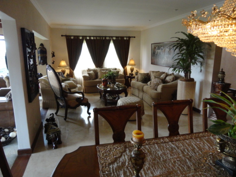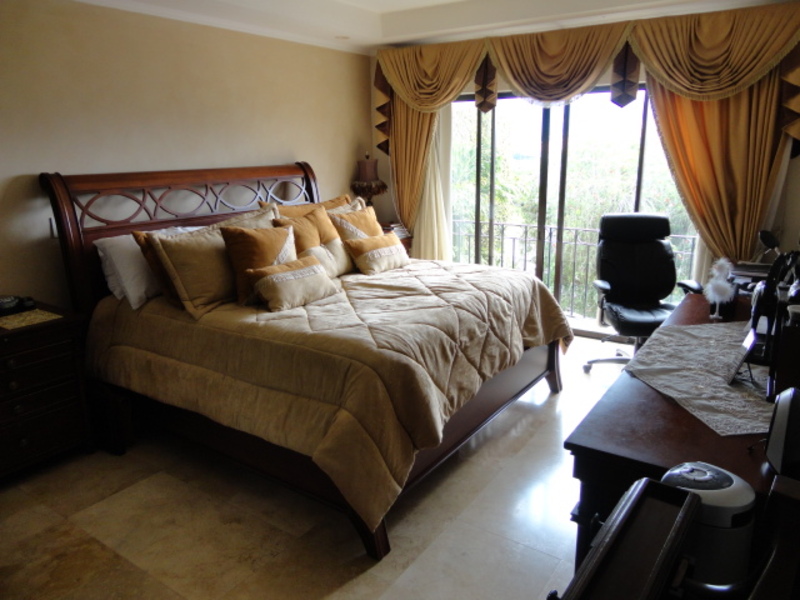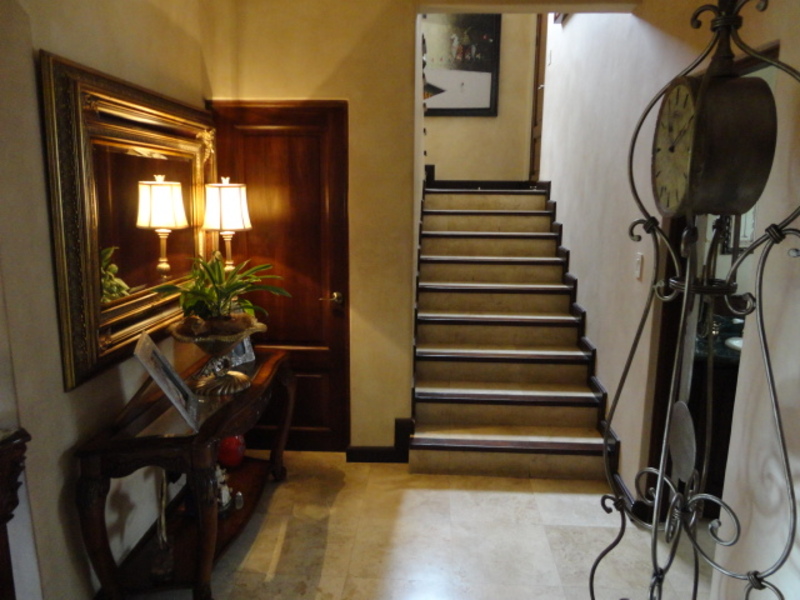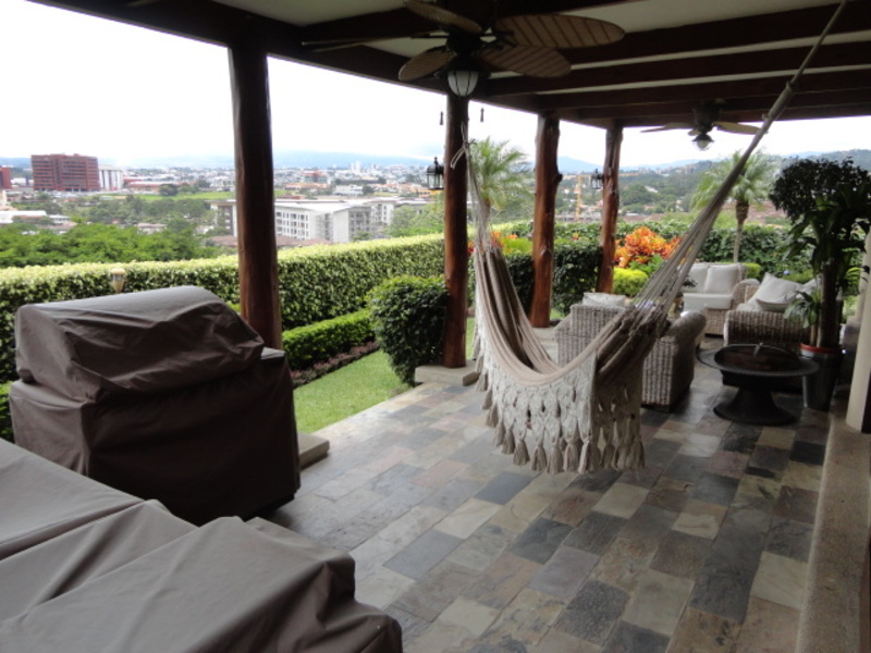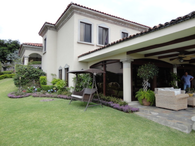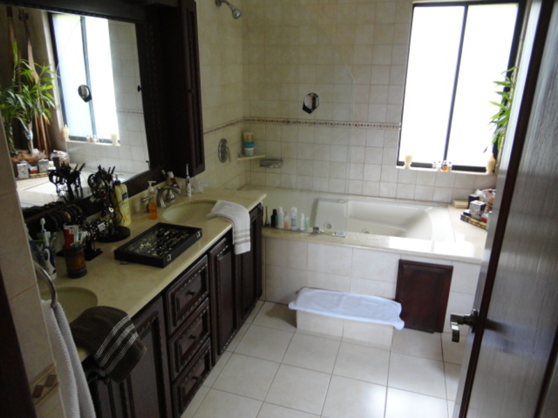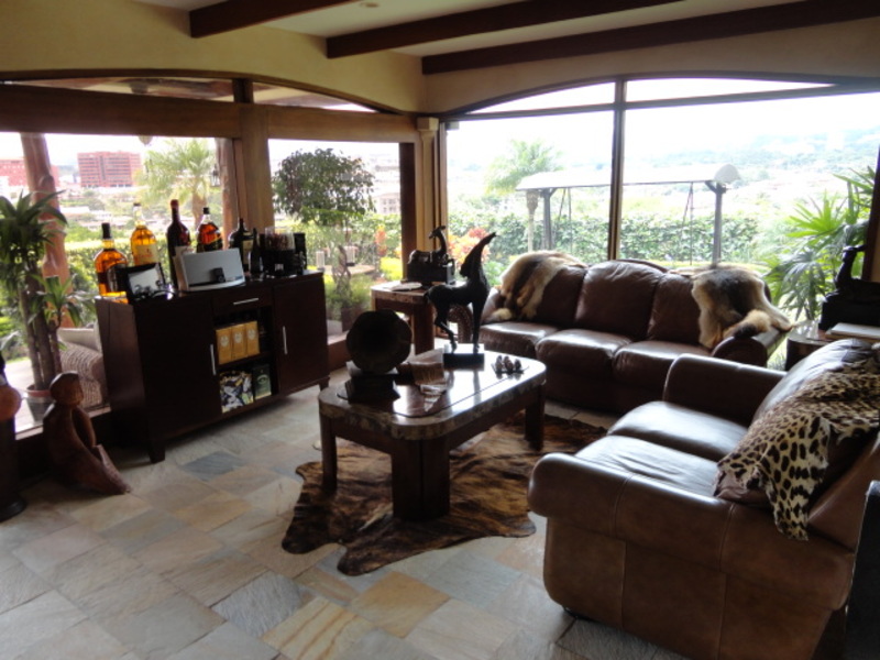 Very beautiful house for sale in exclusive condo in Escazu: with a great location close to schools, restaurants, banks and shopping centers. The house has two levels: the first level has a nice family room and a spacious dining room. It also has another large room with two connecting rooms with a spacious terrace, which has spectacular view of the city. The house also has a large green area with a beautiful garden. The kitchen has a small dining room and a nice terrace in front. The house additionally has laundry area and maids room with its own bathroom. On the second floor is a large TV room, 3 bedrooms, each with air conditioning. All rooms have an amazing view of the city. The main room is very comfortable and has bath with jacuzzi and walk in closet. The entire floor of the house is marble. The sale price includes all curtains and lamps. Can also be sold with all the furniture, If you want!