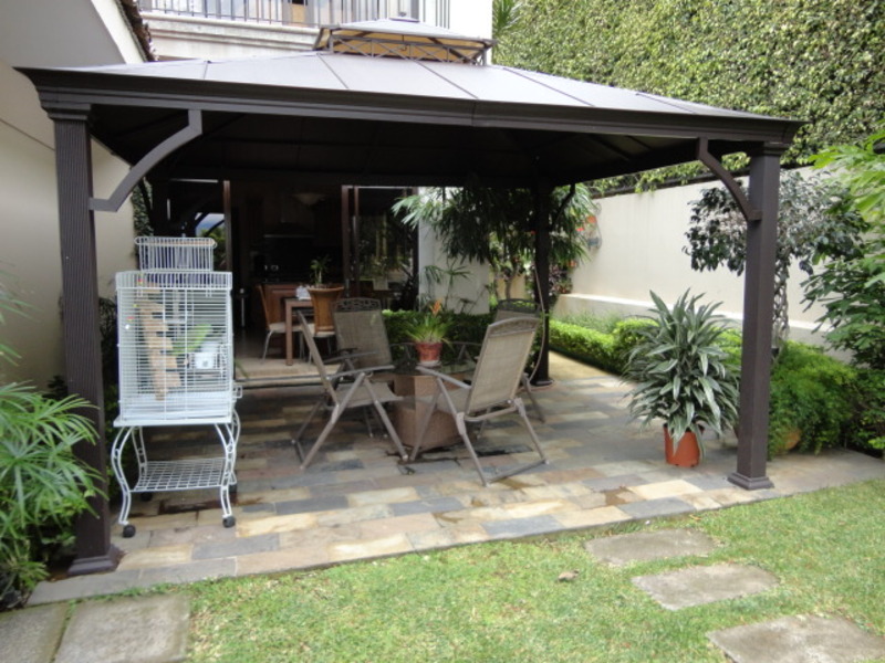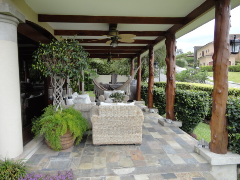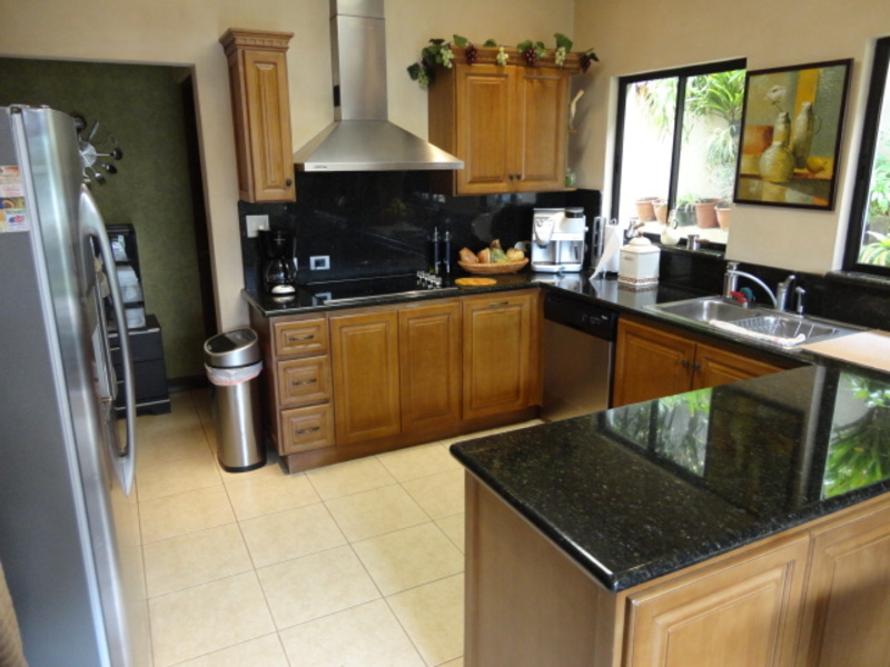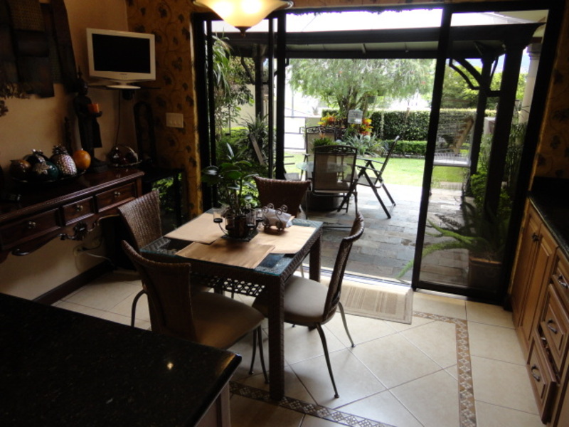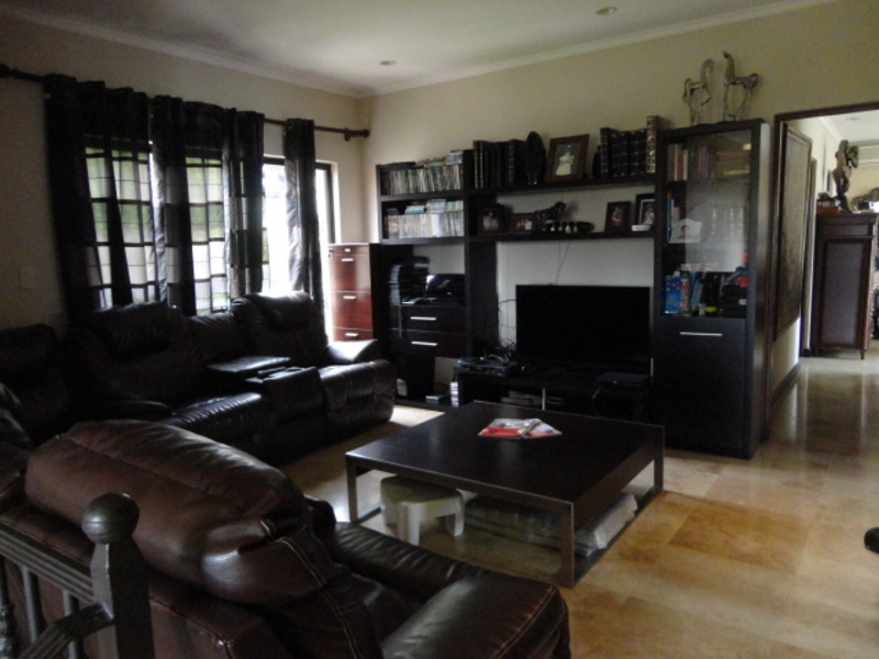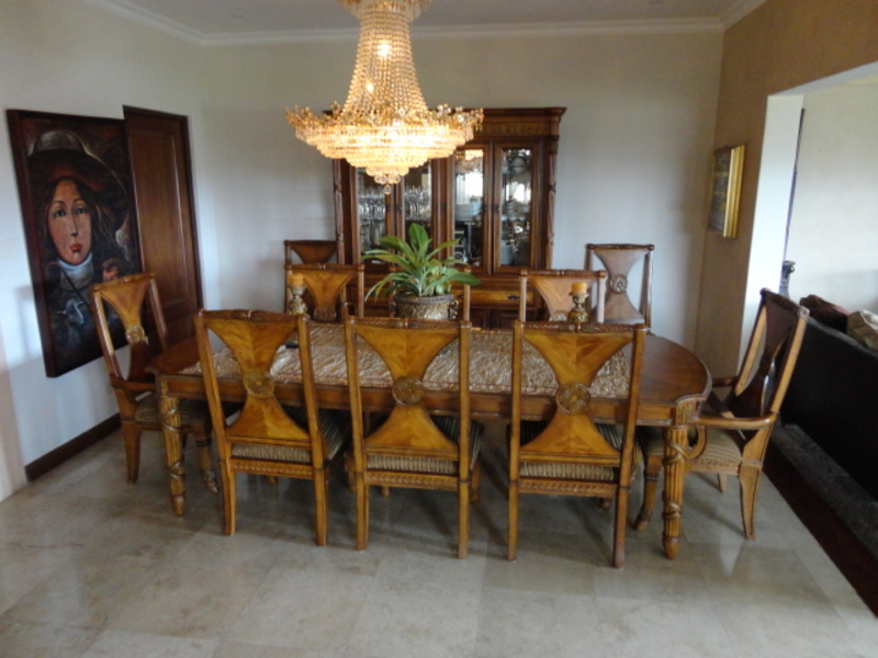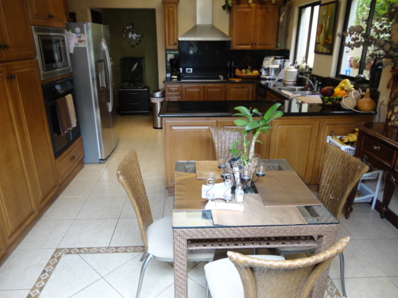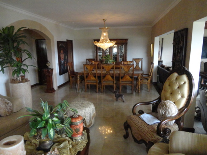 Very beautiful house for sale in exclusive condo in Escazu: with a great location close to schools, restaurants, banks and shopping centers. The house has two levels: the first level has a nice family room and a spacious dining room. It also has another large room with two connecting rooms with a spacious terrace, which has spectacular view of the city. The house also has a large green area with a beautiful garden. The kitchen has a small dining room and a nice terrace in front. The house additionally has laundry area and maids room with its own bathroom. On the second floor is a large TV room, 3 bedrooms, each with air conditioning. All rooms have an amazing view of the city. The main room is very comfortable and has bath with jacuzzi and walk in closet. The entire floor of the house is marble. The sale price includes all curtains and lamps. Can also be sold with all the furniture, If you want!