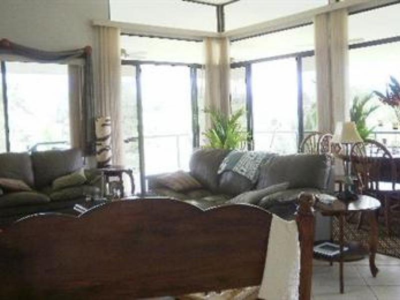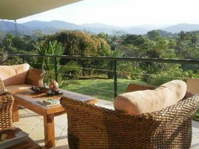 Beautiful 3 Bedroom 3 Bath Luxury house located a short distance from the white beaches of Manuel Antonio and the new Marina Pez Vela. The home is located in an equestrian community with over 300 acres and 10 custom built residences. The property is pristine with many fruit trees, tropical plants, Horses, boarding stables and trails for riding. There isn’t a nicer private and gated community anywhere just outside of Manuel Antonio. The house is designed open air style that allows all the breezes and the mountain views to come into effect. It boasts almost 3000 sq ft with 2 levels. There is a private road leading to the house as well as private and secure parking. The views from this house overlook the lush gardens of Finca Tranquilas and the mountains of the Cera Narra range. This is a perfect house and location for anyone wanting close proximity to the beaches and nightlife but just far enough away for total peacefulness and privacy.