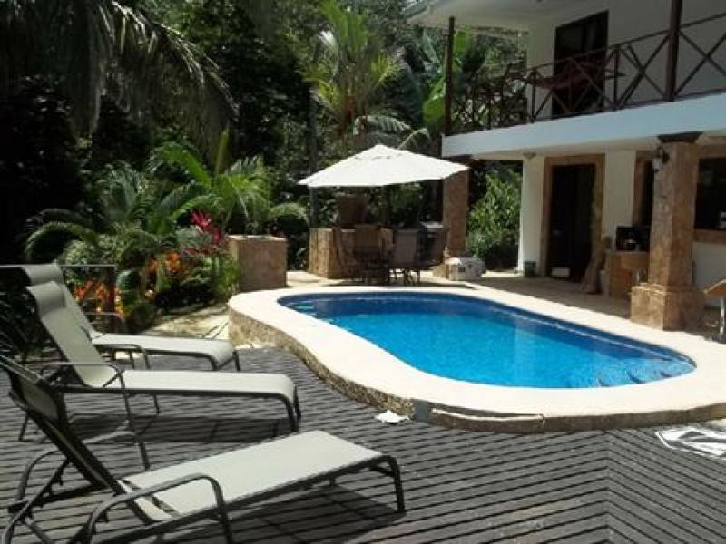 This beautifully detailed 3 bedroom home is set right in the heart of the jungle. From the pool and decks you can hear the babbling brook that runs behind the house and the sound of the breeze running through the leaves of the surrounding trees is totally relaxing.