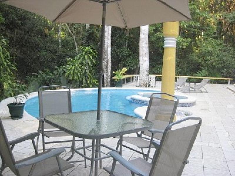 This beautiful jungle home is set in a bamboo forest with a private pool and jacuzzi. The house is 2-story, can be used as a duplex or single family home, each floor with washer/dryer, kitchen, living and sleeping areas. Monkeys pass by your dining room window over breakfast and in the afternoons. Relax in the pool or jacuzzi as you enjoy the sounds of the jungle. This home is perfect for someone who wants to have vacation rental income from one floor and live on the other floor.