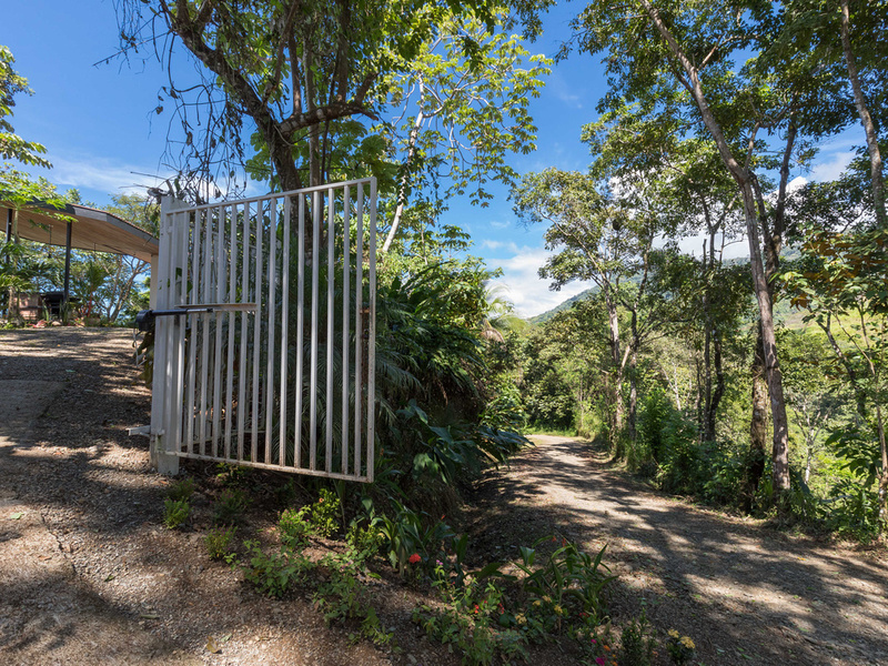 Located in Matapalo, approximately midway between Quepos and Dominical, this front ridge house is perched on 1.12 acres; an easy 2-minute drive from the coastal highway and a 5-minute drive from the beach. You pass through the privacy gate and continue up an improved concrete driveway to the house.