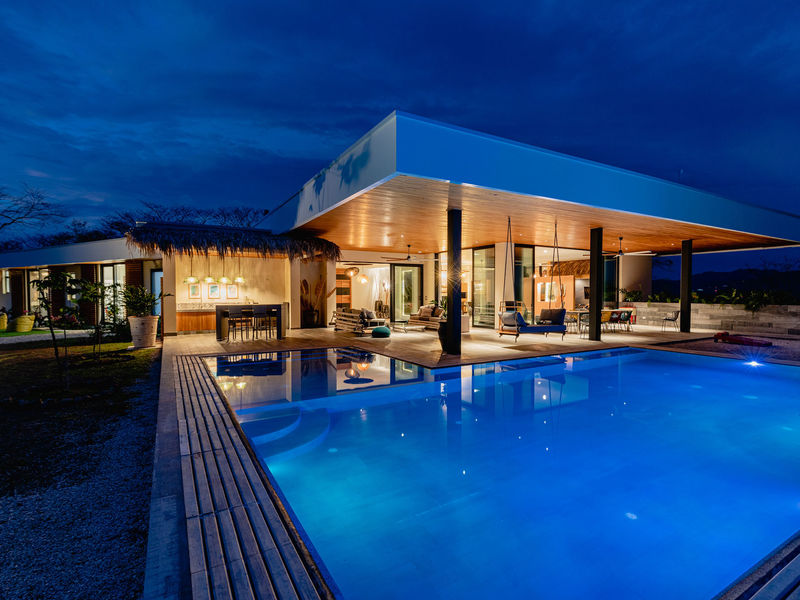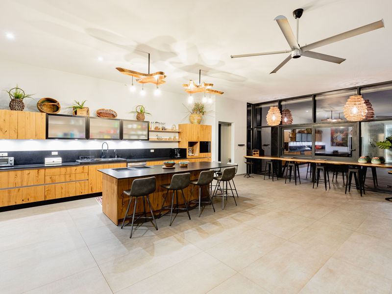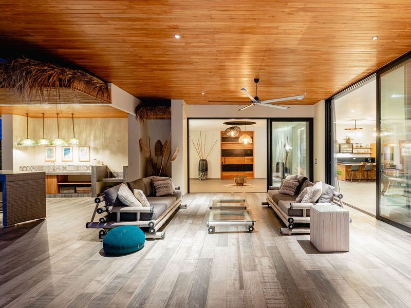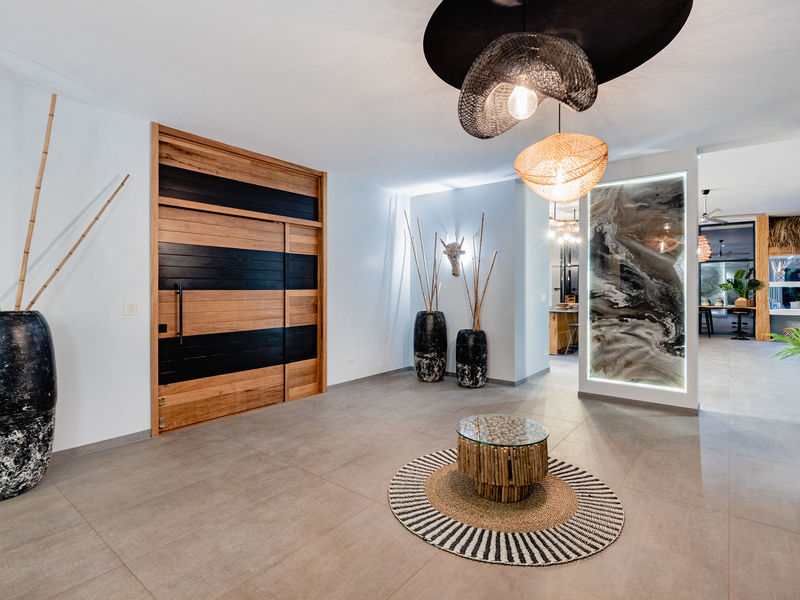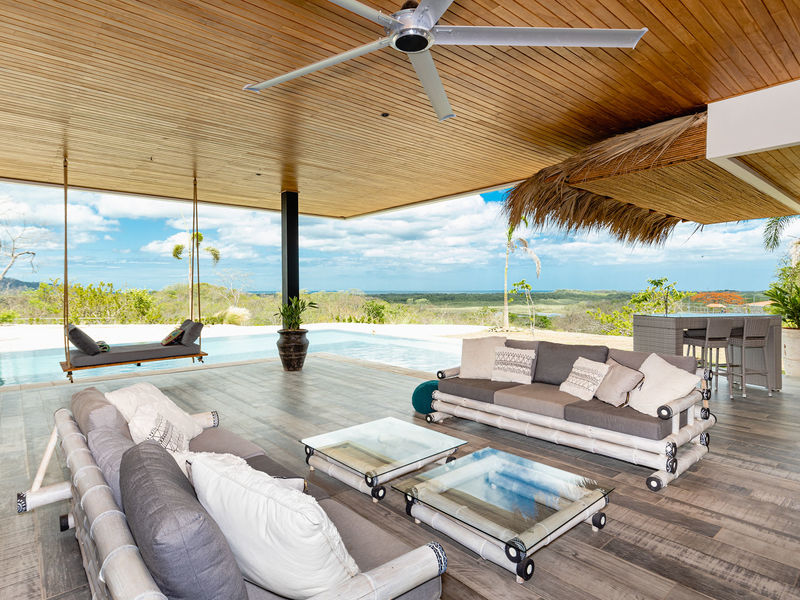 From the moment you enter the home you are greeted with incredible 360 degree views from the Pacific Ocean, down to Tamarindo and then inland over the hilly landscape and rolling green hills. The over sized and expansive living area is on the left hand side of this beautiful home, located above the huge 175m2 garage.