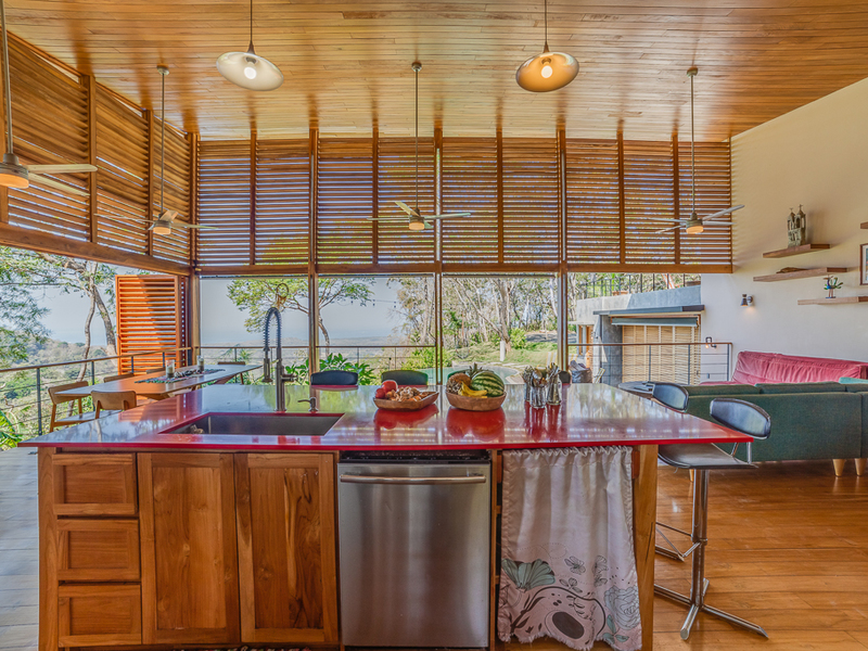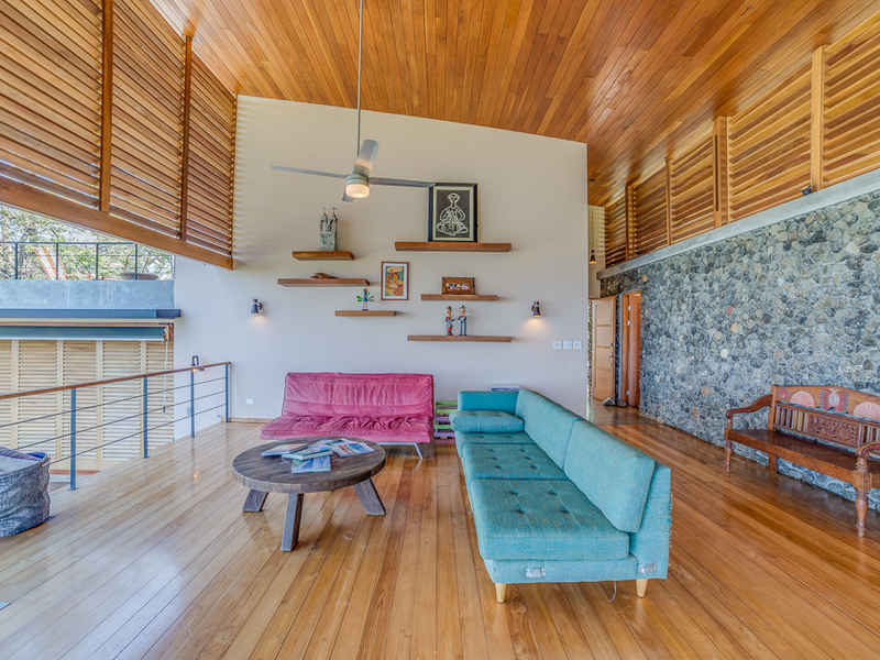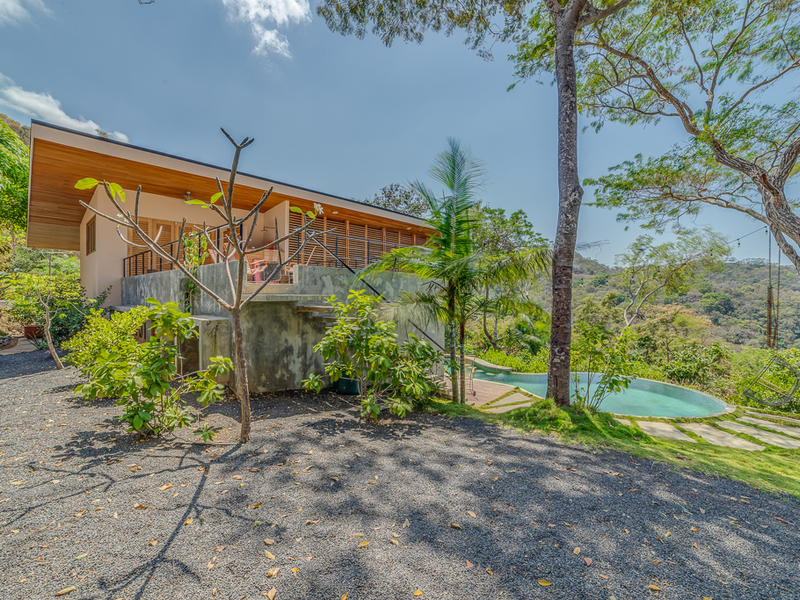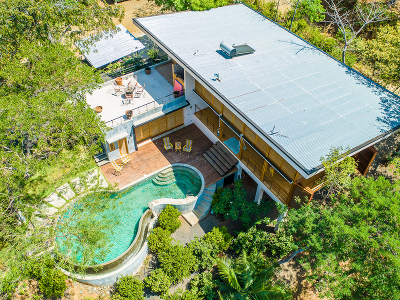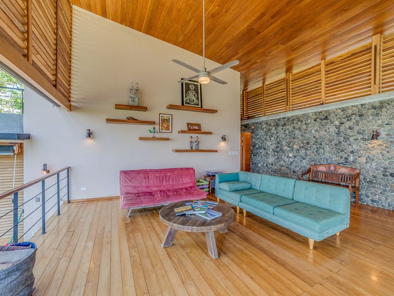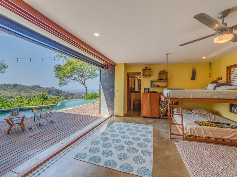 Imagine yourself relaxing by the pool or on your own large second story deck above the jungle looking out over the Pacific Ocean. Casa Libertad is a recent Salagnac Arquitectos design by Lucca Spendlingwimmer who has recently built his own personal home in the Bosque Verde neighborhood. The home is set up for the current owners to home school their four children in the school room you see in the photography. The master sweet is upstairs and boosts a huge outdoor "adult" patio that stretches out the extent of the L - Shape of the home with views of the San Juan Mountains to the east and the Pacific Ocean to the west. The well appointed kitchen is open to the expansive outdoor space with a large infinity edged pool for entertaining. The yard is large and flat on the top terrace and extends to the south in to the jungle below with an incredible amount of buffer and privacy from your neighbors.