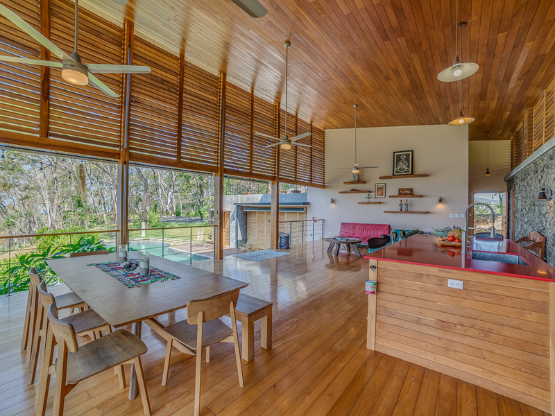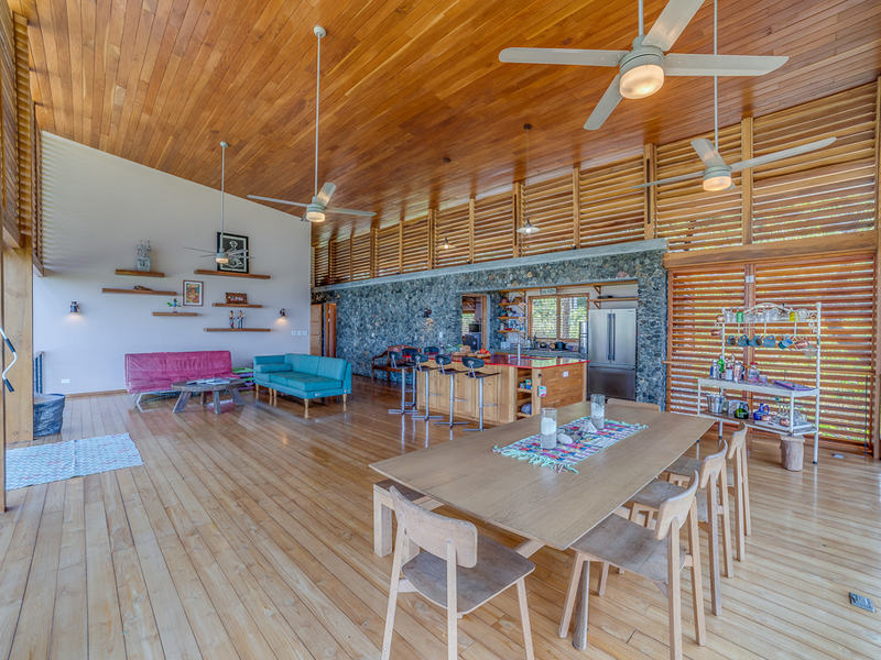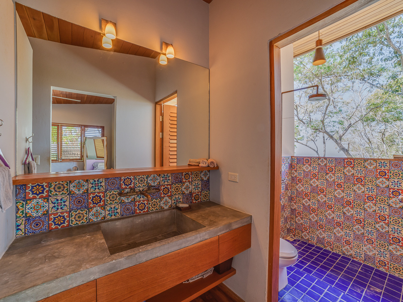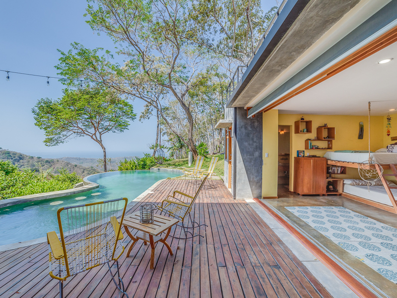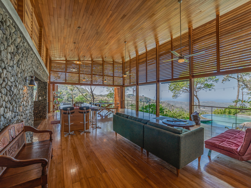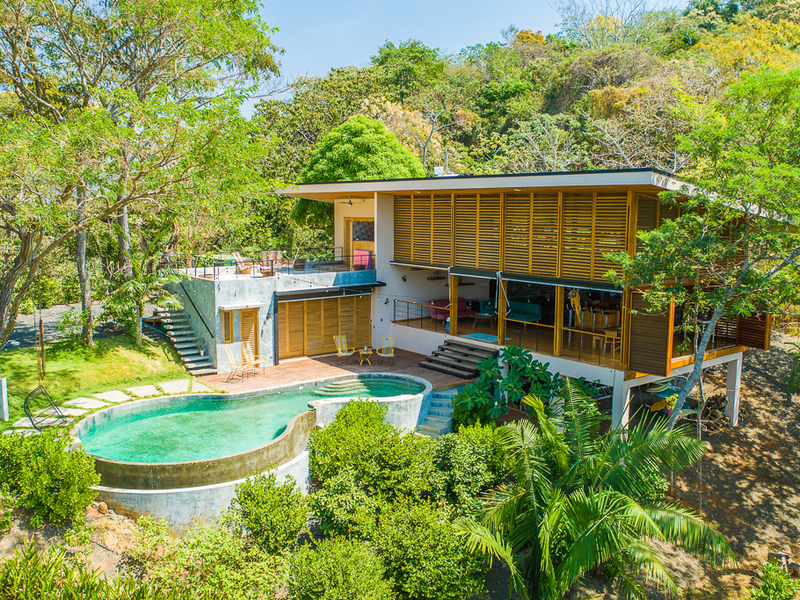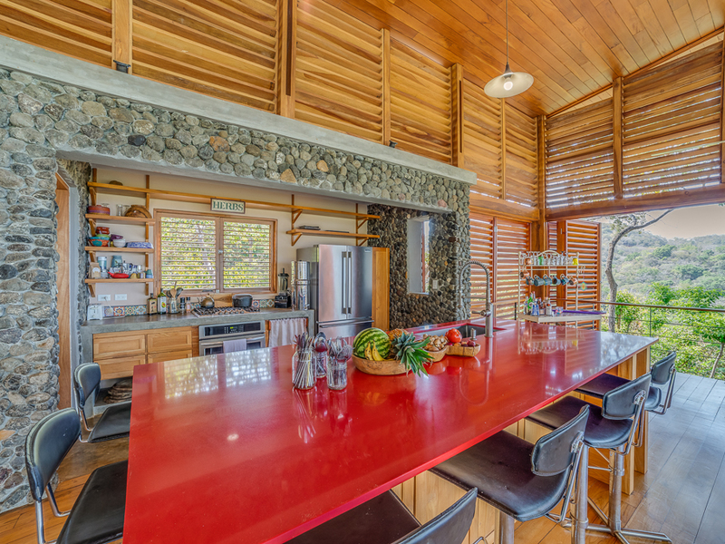 Imagine yourself relaxing by the pool or on your own large second story deck above the jungle looking out over the Pacific Ocean. Casa Libertad is a recent Salagnac Arquitectos design by Lucca Spendlingwimmer who has recently built his own personal home in the Bosque Verde neighborhood. The home is set up for the current owners to home school their four children in the school room you see in the photography. The master sweet is upstairs and boosts a huge outdoor "adult" patio that stretches out the extent of the L - Shape of the home with views of the San Juan Mountains to the east and the Pacific Ocean to the west. The well appointed kitchen is open to the expansive outdoor space with a large infinity edged pool for entertaining. The yard is large and flat on the top terrace and extends to the south in to the jungle below with an incredible amount of buffer and privacy from your neighbors.
