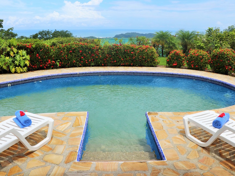 This spacious 3 bedroom 2½ bathroom home comes with 180 degree ocean views and 360 degree ocean/valley/mountain views. The house construction is 2,400 tf² and is situated on a 1,631 m² (0.4 acres) lot. Enjoy beautiful sunsets all year round. The large patio doors open to beautiful under roof patio/deck where you can relax and enjoy the swimming pool and beautiful ocean views. Inside you will appreciate the gourmet kitchen that comes fully equipped with top of the line appliances and a large dining area, great for entertaining. Definitely a plus for this house.